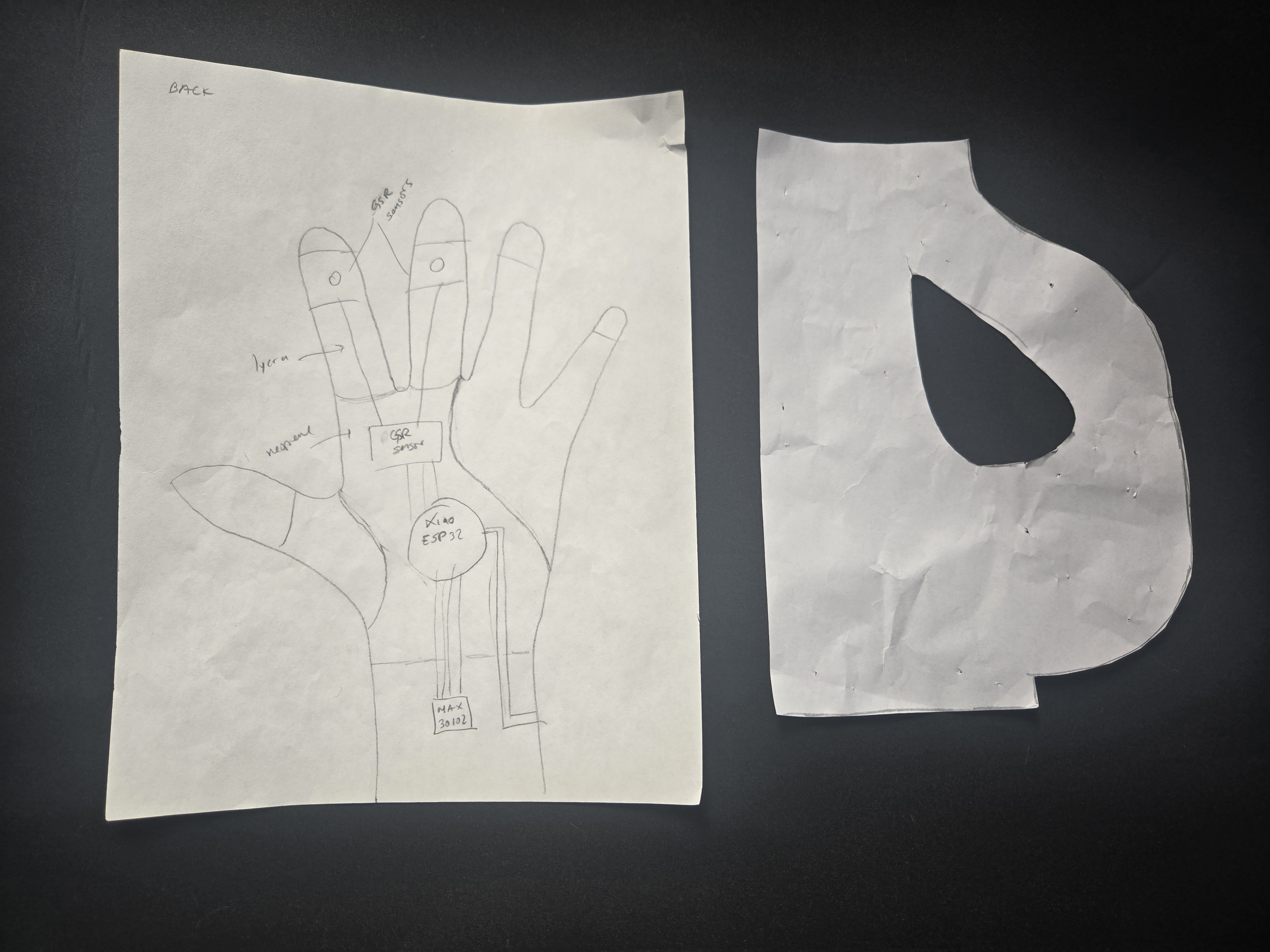 I began by drawing my own hand on paper, then used it as a base to sketch the glove design I envisioned