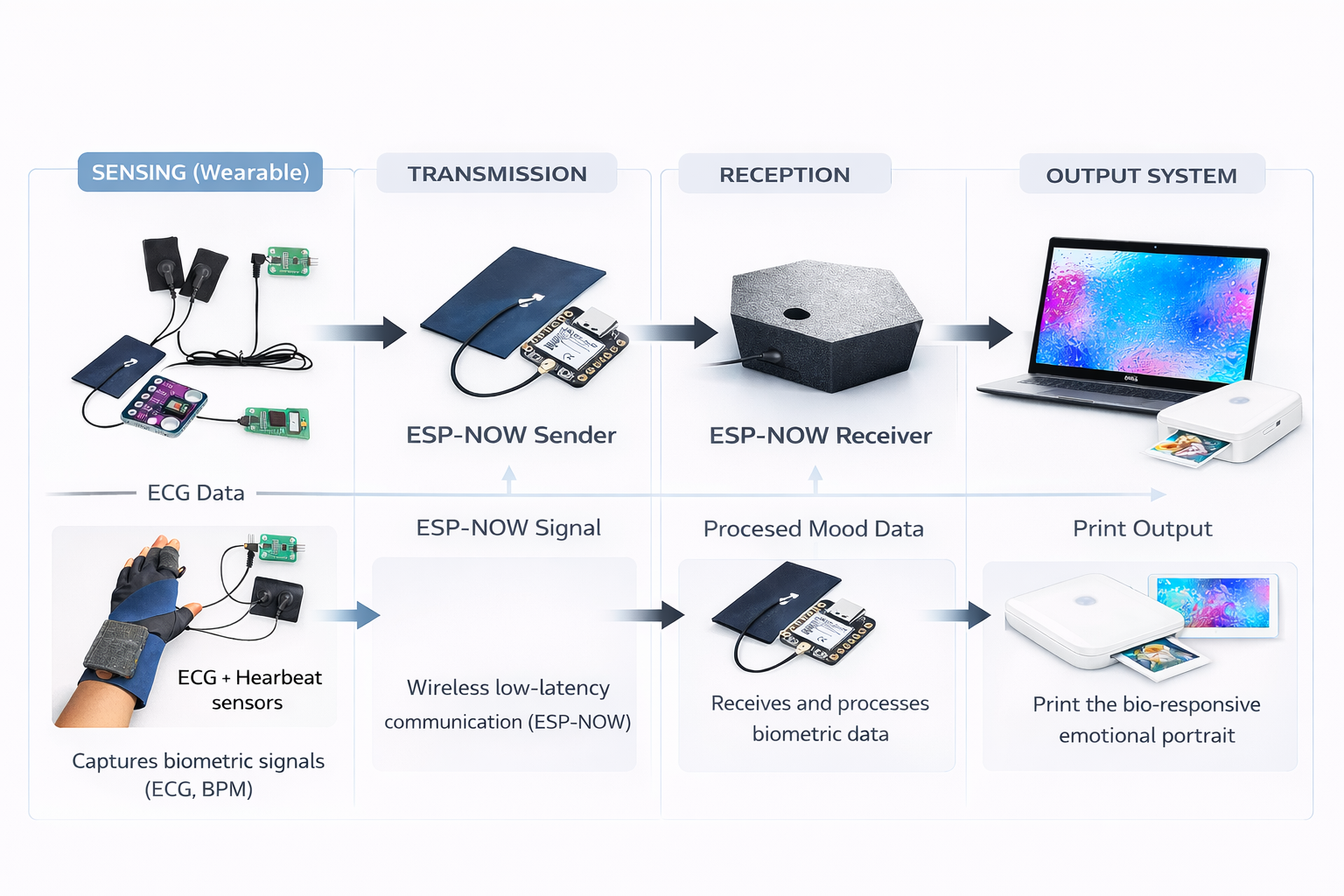 Anastasia the system could combine the heartbeat and galvanic with the persons hand movement, for example different colors are the heartbit, the galvanic value is the type of brush and the movement of the hand is the tracing on the lines (drawing) iti is important to explore the drawing part. your hardware can be simple and functional and the drawing can be developed further to be more attractive.