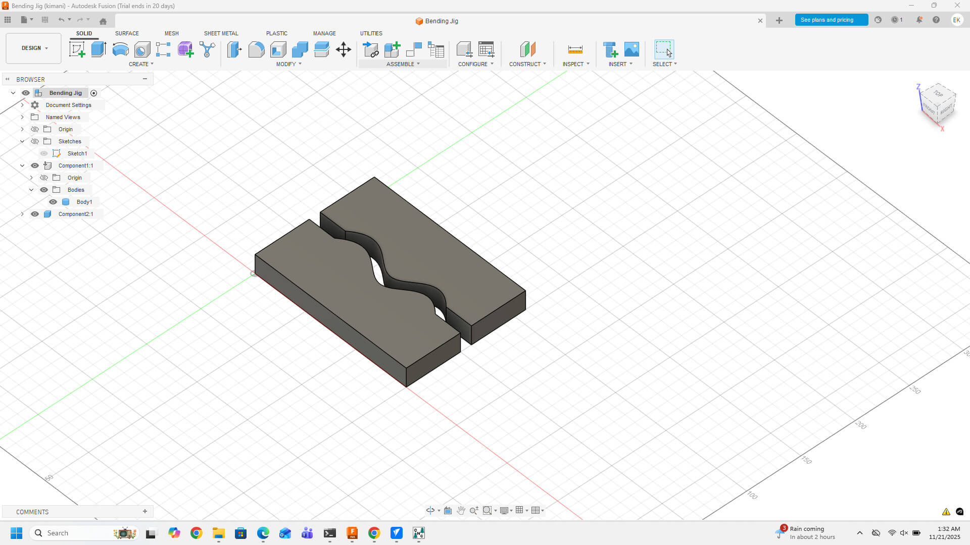 I started by designing the mold/jig in Fusion 360. I did a 3D model for better visualization.