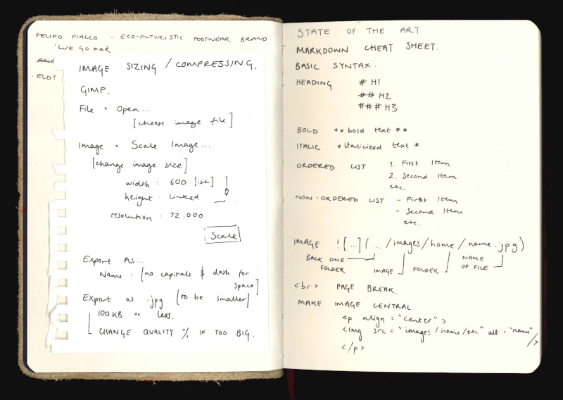This is my notebook where I will organise all of my projects. This is an example of how I've used it to organise instructions and markdown codes.