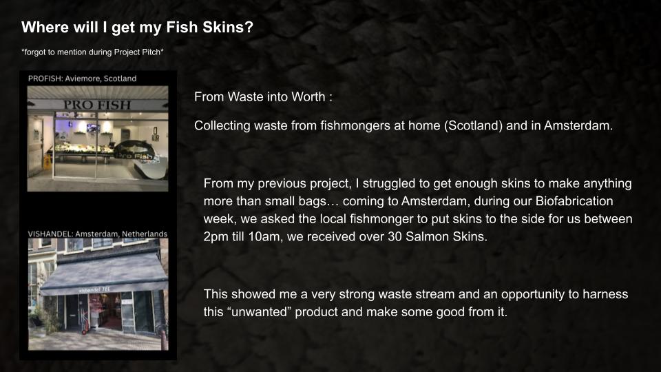 It would be interesting to find a waste stream in Amsterdam to provide you with the fish skin.