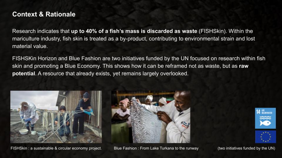 Diane : You might know them: Ictyos is a french company that processes fish skins into different objects; they get the skins from restaurants though so they don't necessarily have a focus about the locality, which I think is a super interesting part of your project!