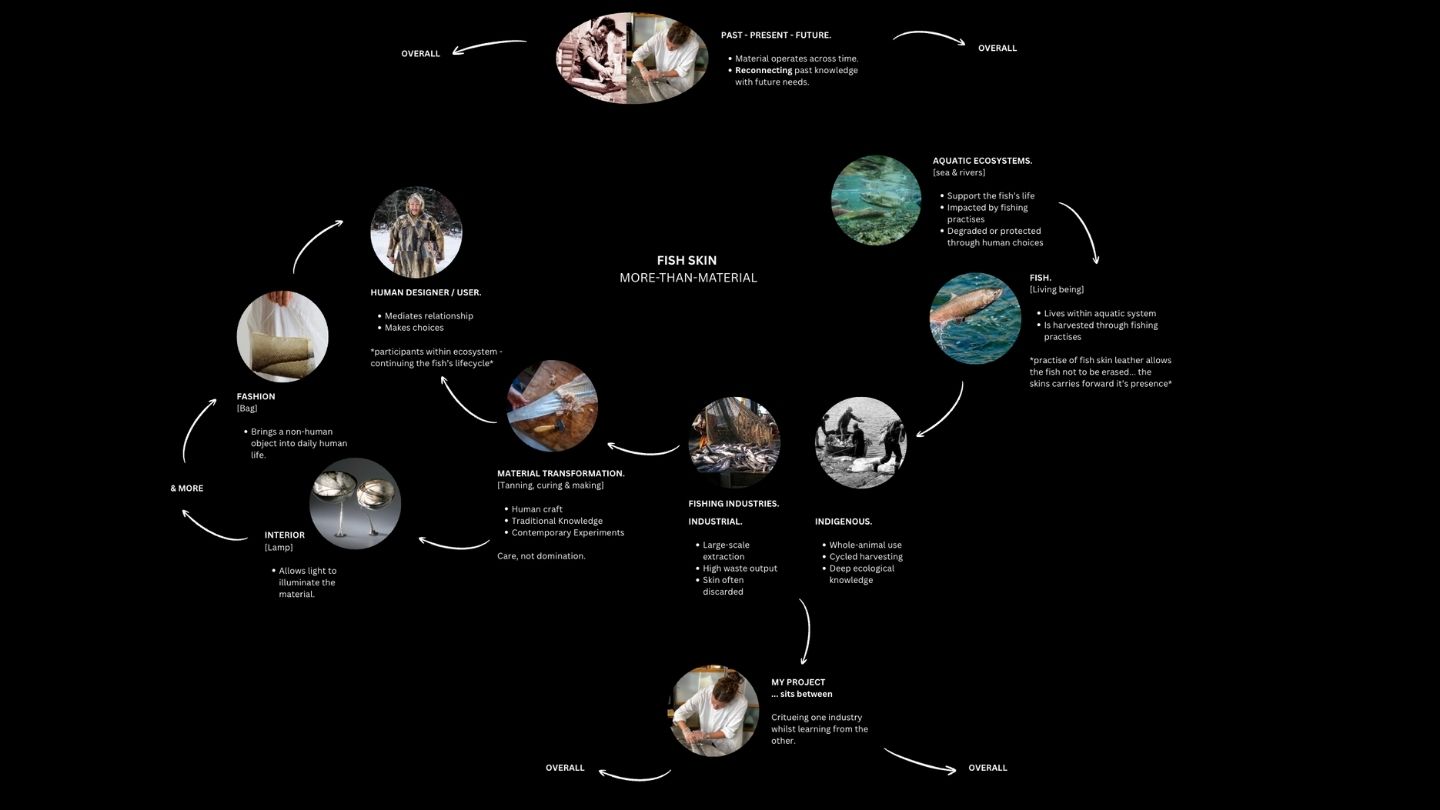 Waste signals a broken relationship. This project asks what happens after consumption and proposes design as a way to continue the fish’s lifecycle and restore balance rather than extract value.