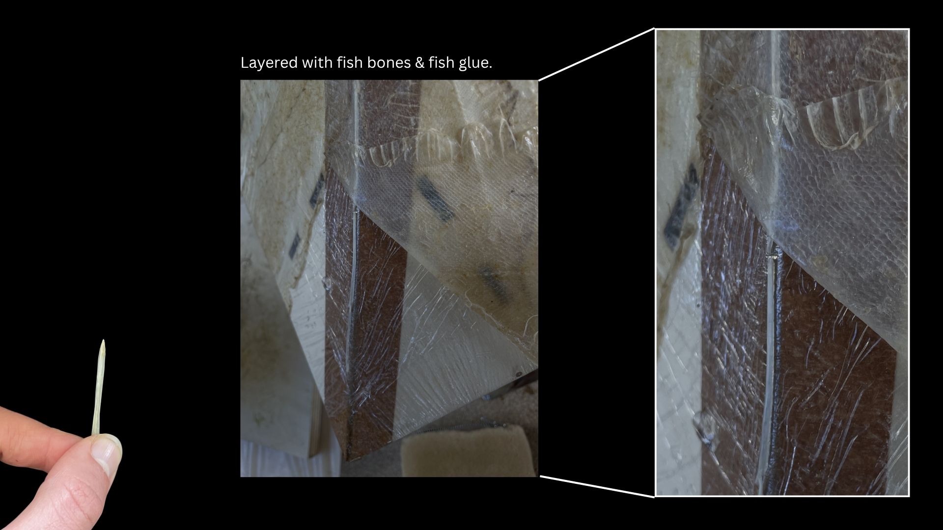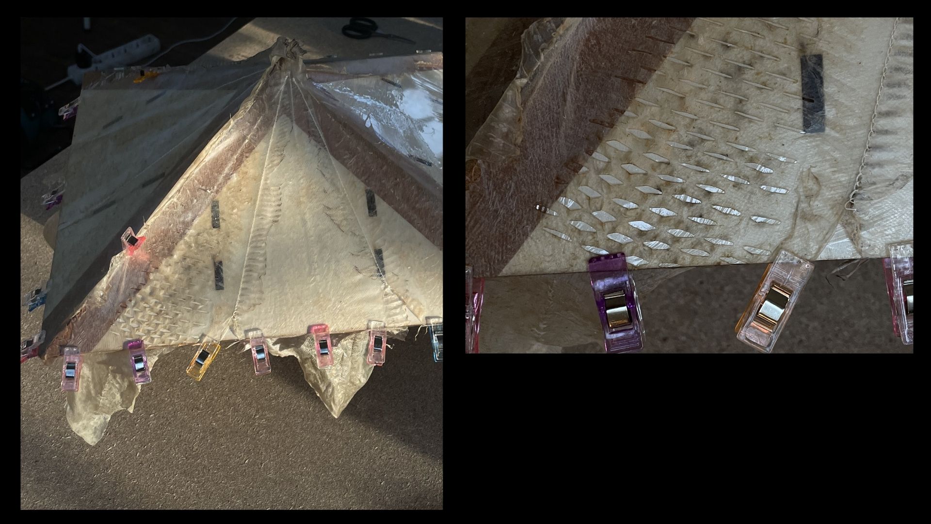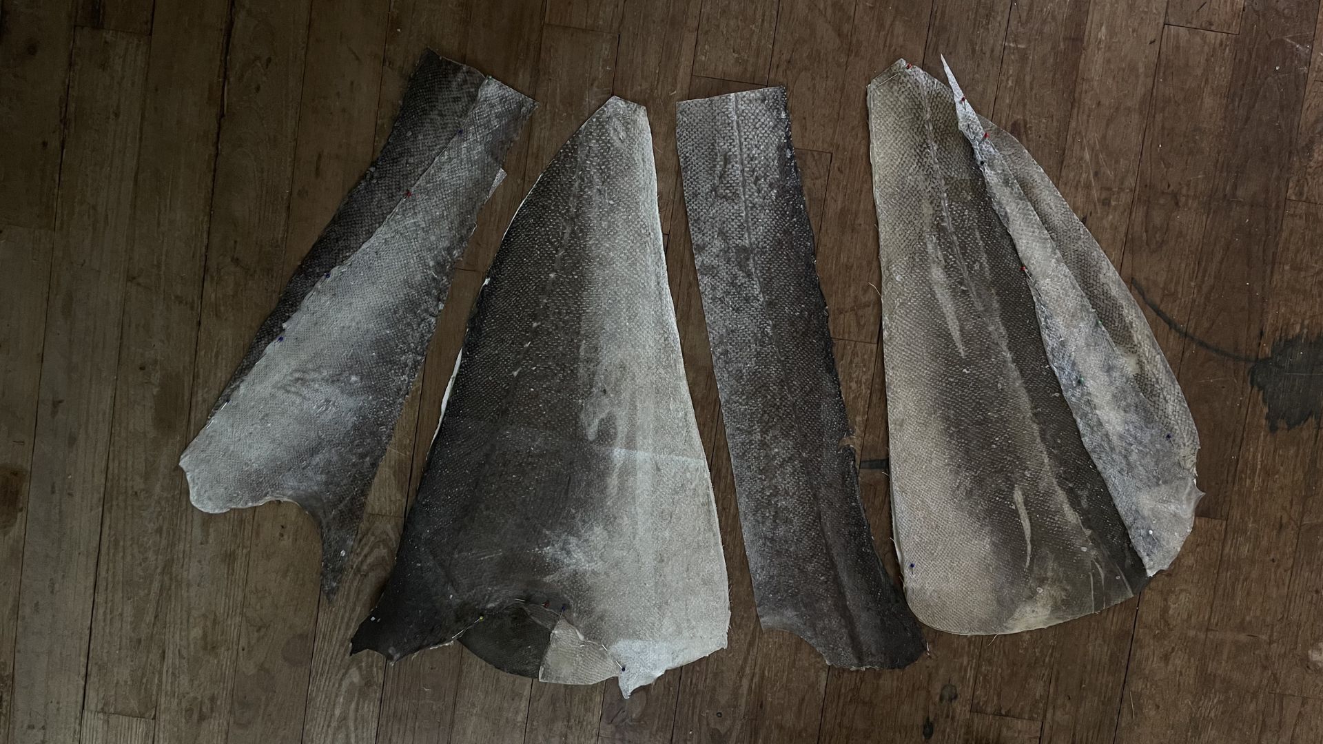 These experiments were great in giving me a deeper understanding of how the skin reacts when being manipulated. It was important that I found out that rehydrating the skin and moulding it around the shape worked very well. This put less pressure on the composite and showed me that the fish could do (most) of the work itself. Something to keep in mind.