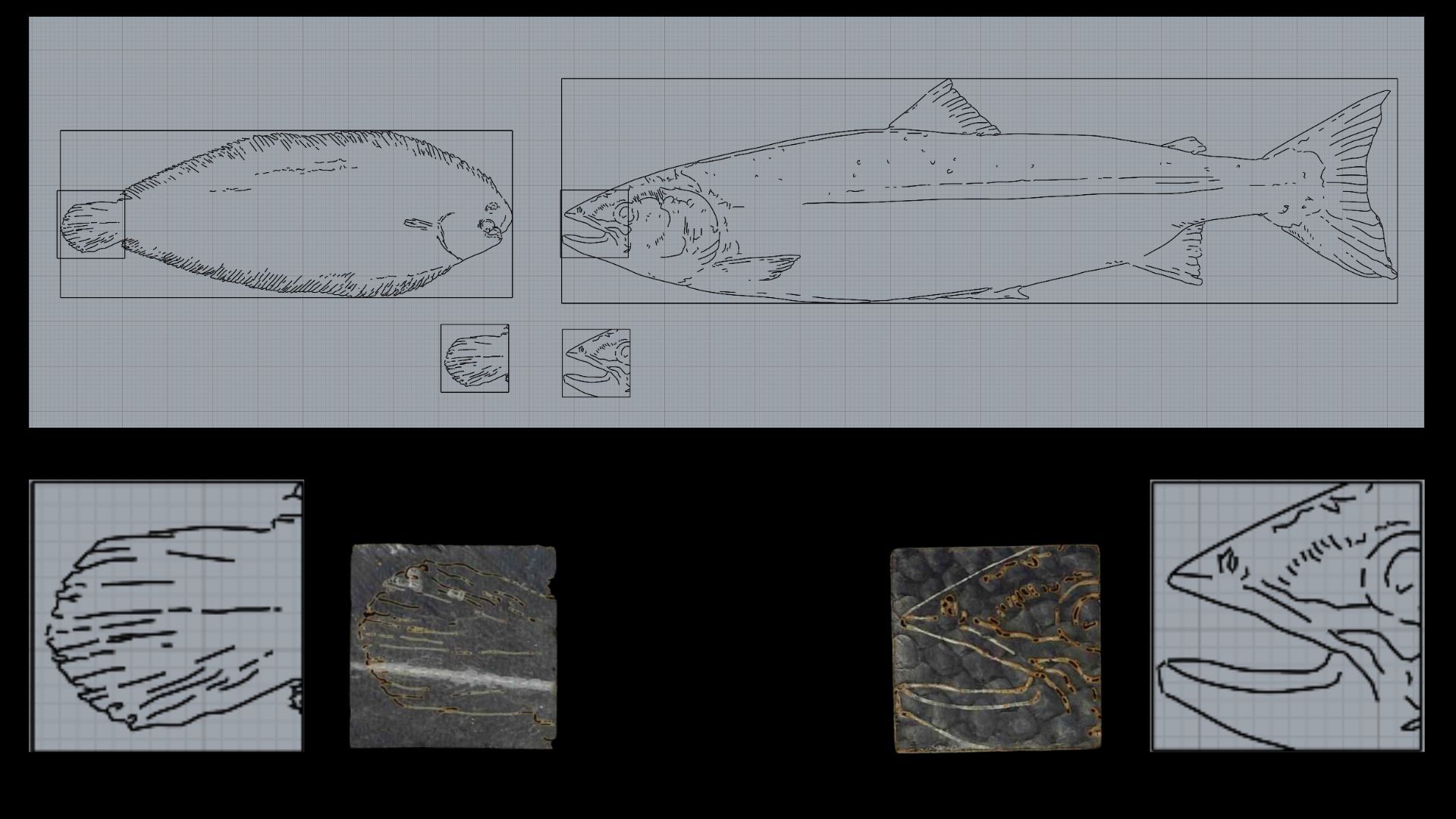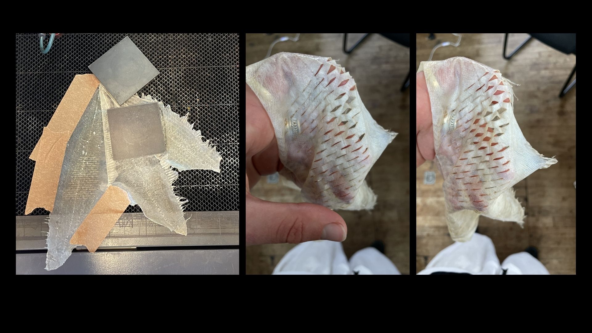 Thanks to the help of Asli, we went through a process of trial and error, testing out different parameters until we found the perfect one. I made designs in Rhino fit to the exact fish we would be cutting, allowing the fish to guide my design process.