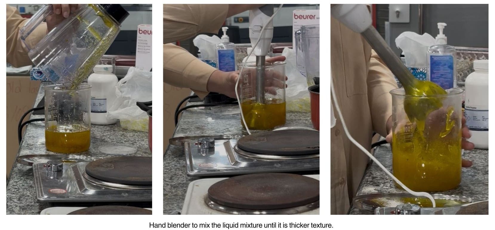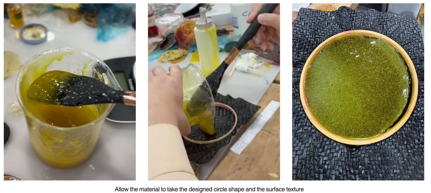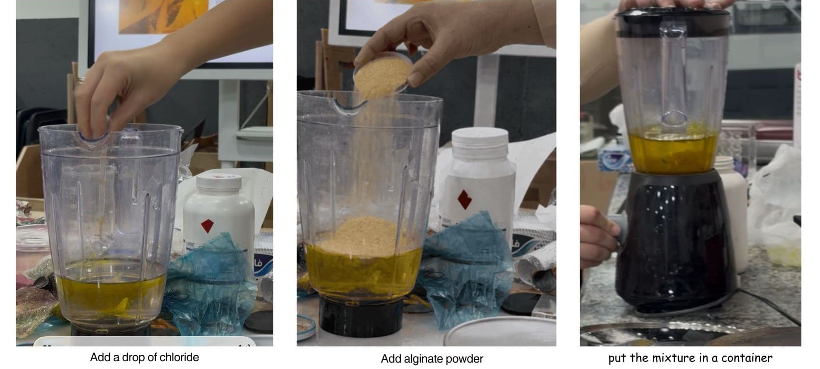 These are the steps based on the amount of recipe "note that you can adjust the amount and expiremnt!" , after i finished the work steps i used the silicon mold to pour the bio material on as shown on the image above.