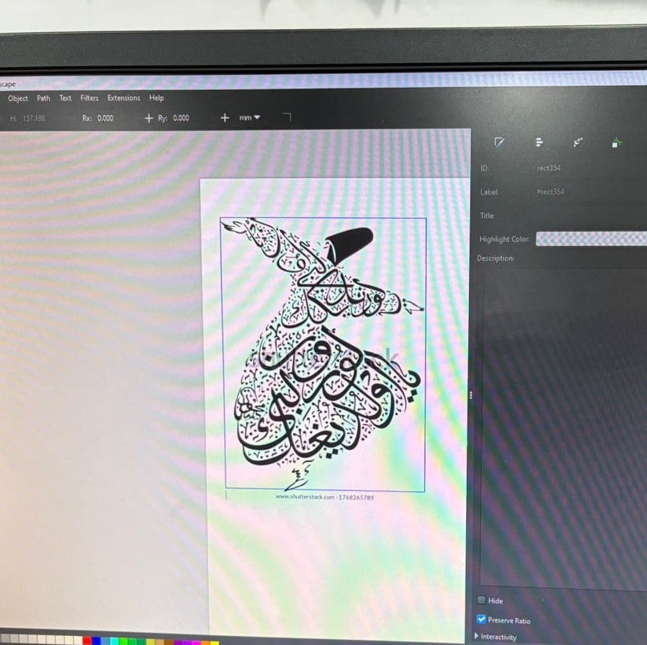 I searched for a photo related to rumi to try it with cut on the bio material (Gelatine Bioplastic) to be drawn on with low power in laser settings.