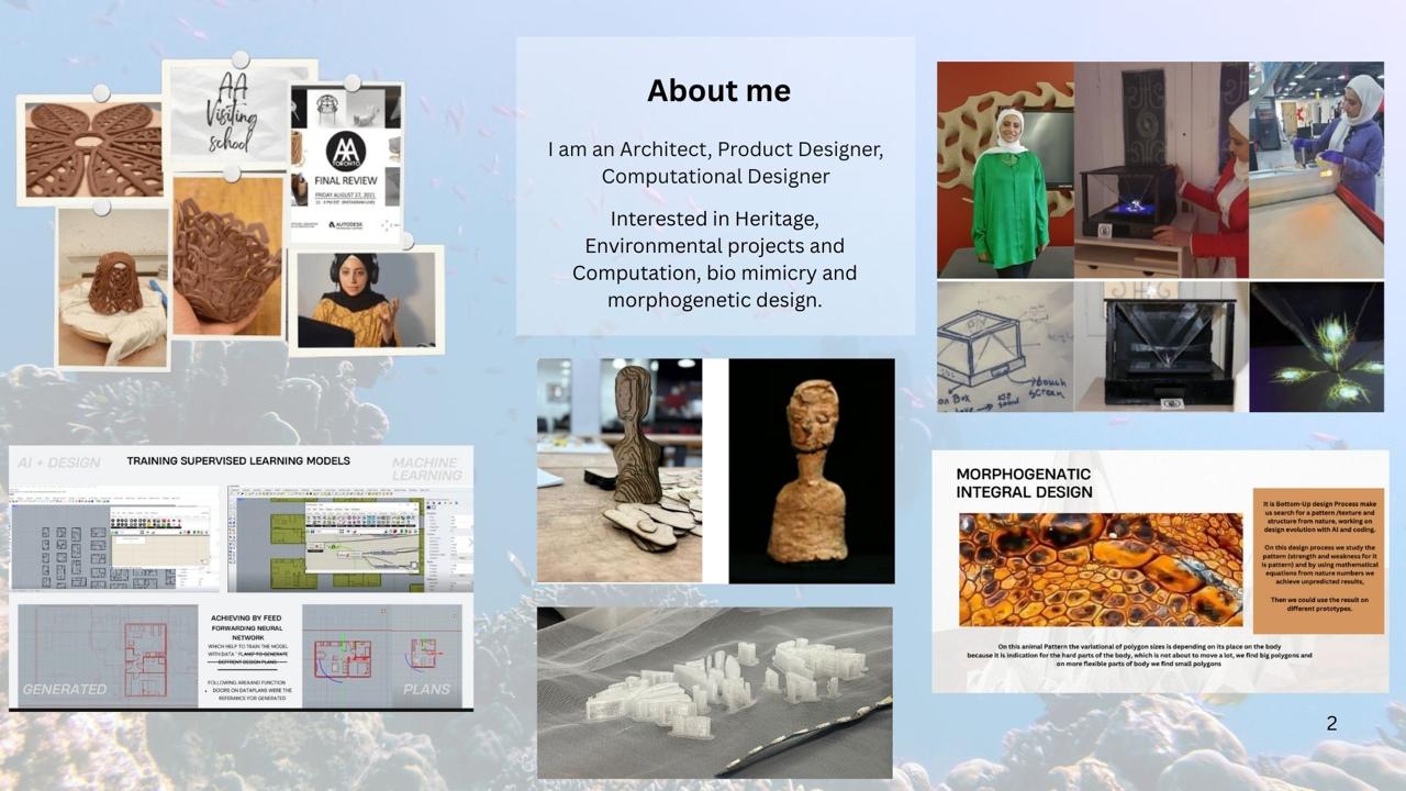 An architect , computational designer ,Product maker and intrested in suustainability and heritage and during this research i will be using sustainable - eco freindly material .