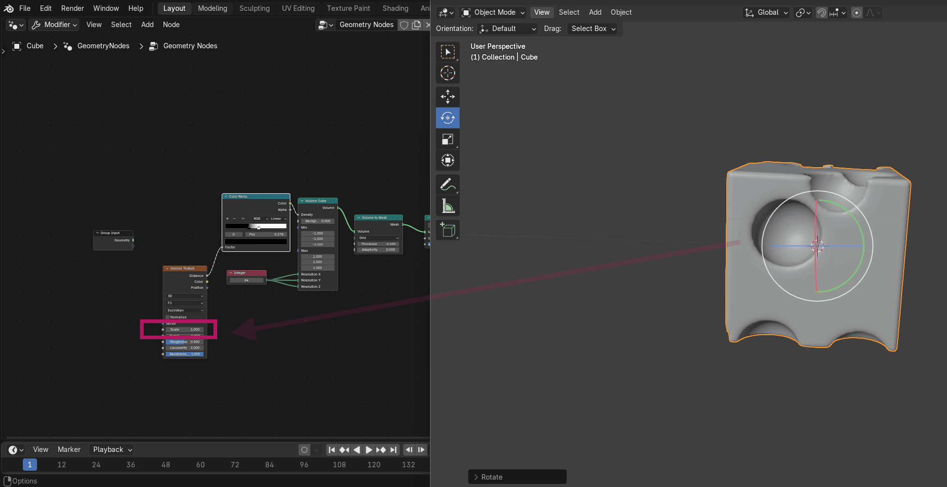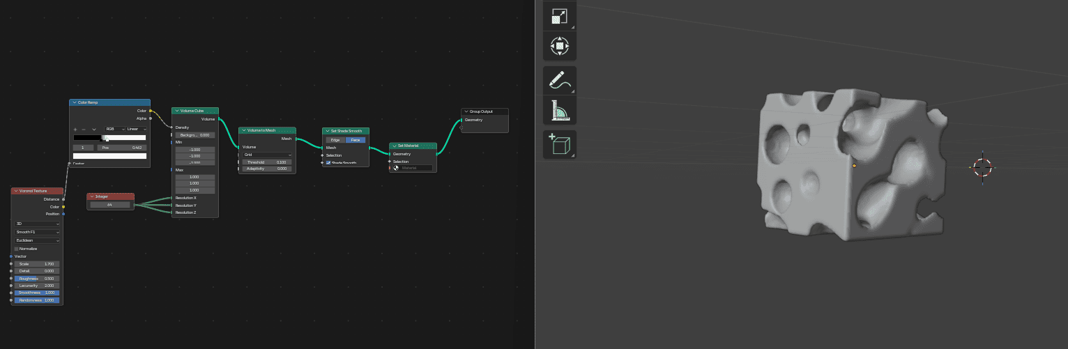 Was First time for me using blender and visual script inside it to creat Gyroid shape with opening such as sketch i already made previously .