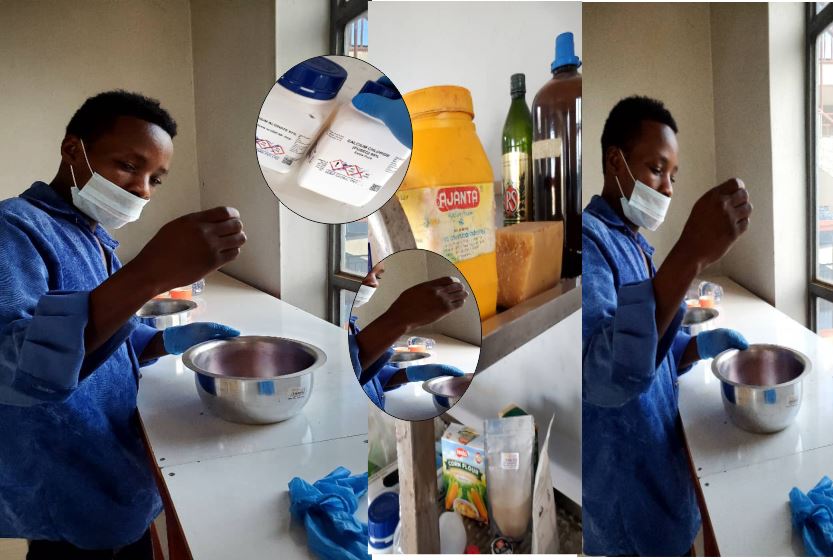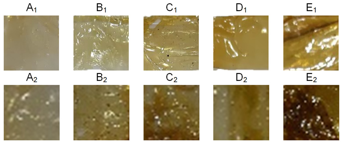 After that, I added glycerin to make the film more flexible and mixed again. I then added yellow food color to dye the material.