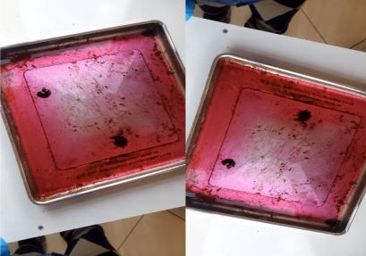 I poured the liquid mixture onto a flat tray and spread it evenly to form a thin layer. The film was left to cool and dry for several hours. Once fully dry, I carefully peeled off the sheet to obtain a thin gelatin bioplastic film.