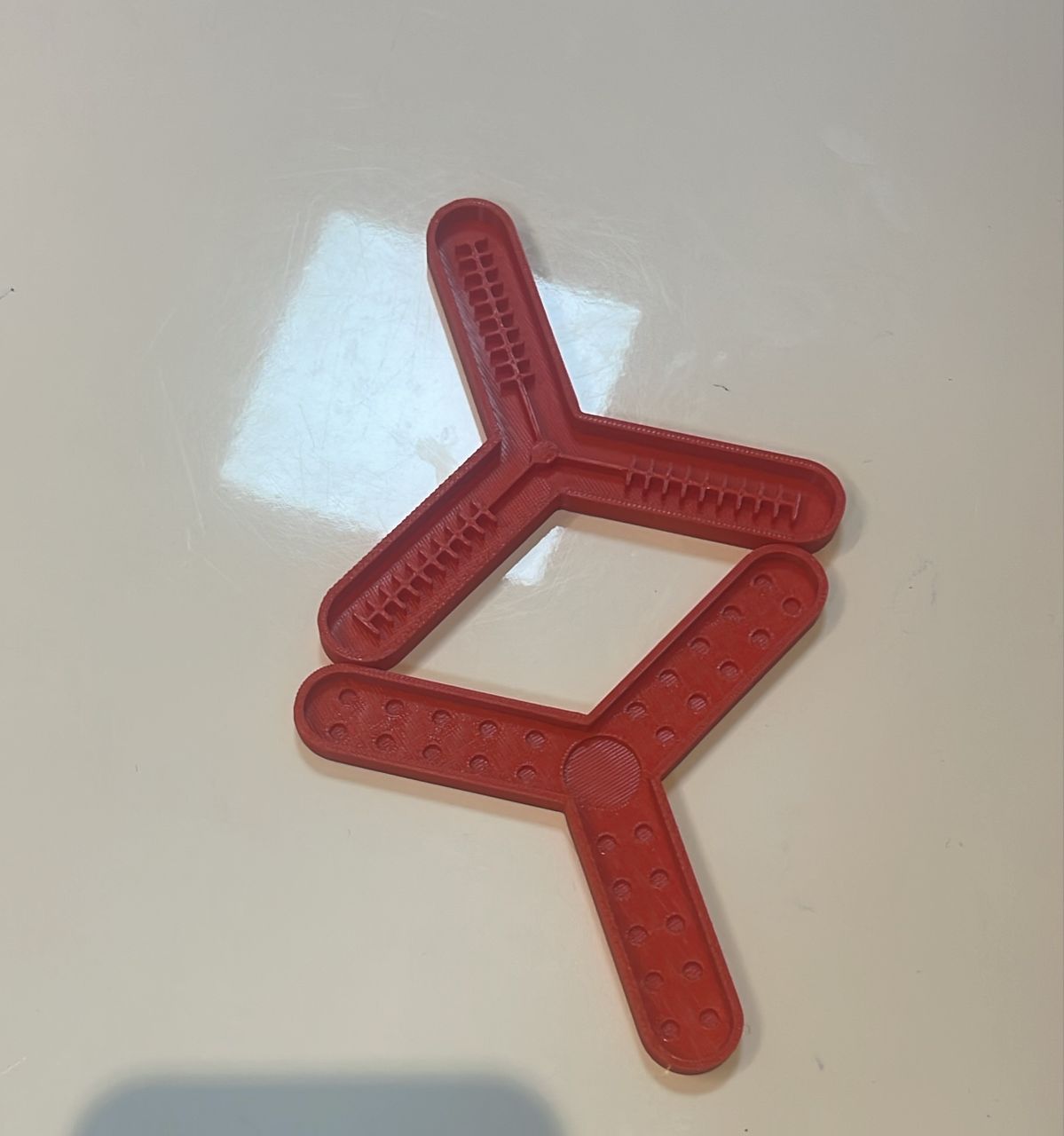 I printed the parts using an 3D printer with PLA material. red one