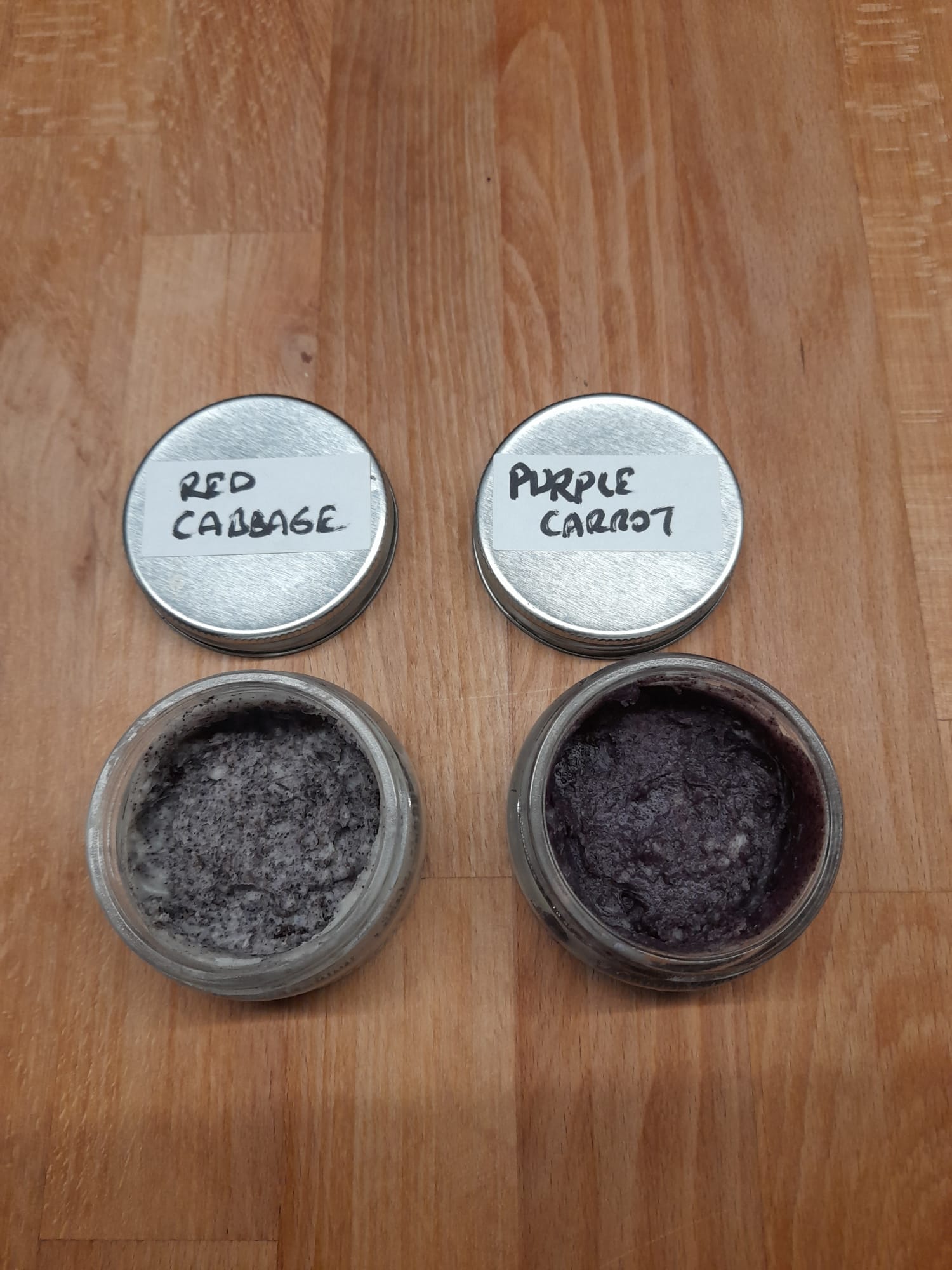 Dried red cabbage and purple carrot were selected due to their anthocyanin content.