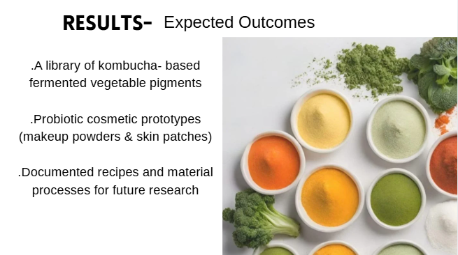 The work explores kombucha-based fermentation as a living biofabrication system and investigates how vegetable-based pigments obtained through fermentation can be transformed into cosmetic and skin-contact materials.