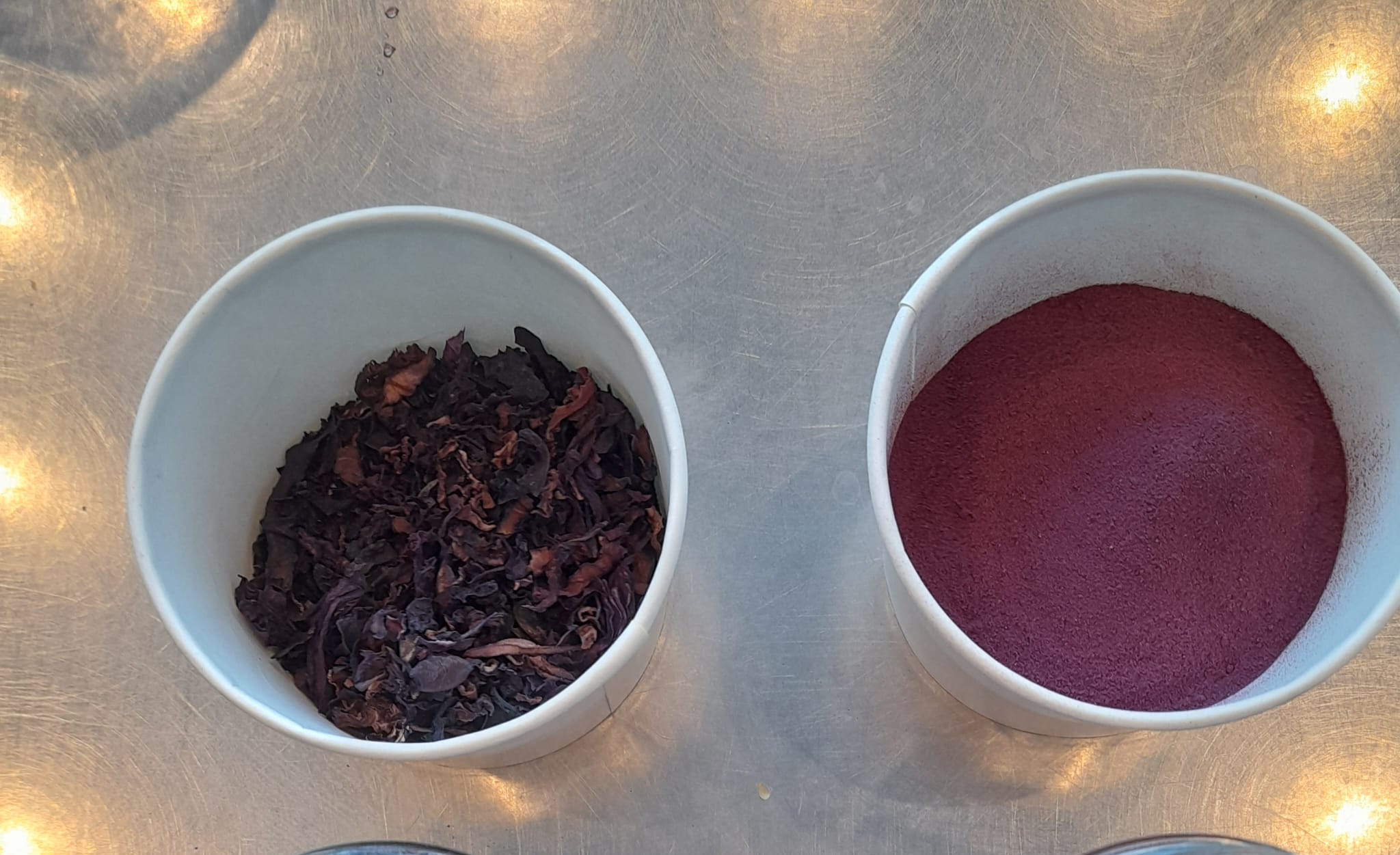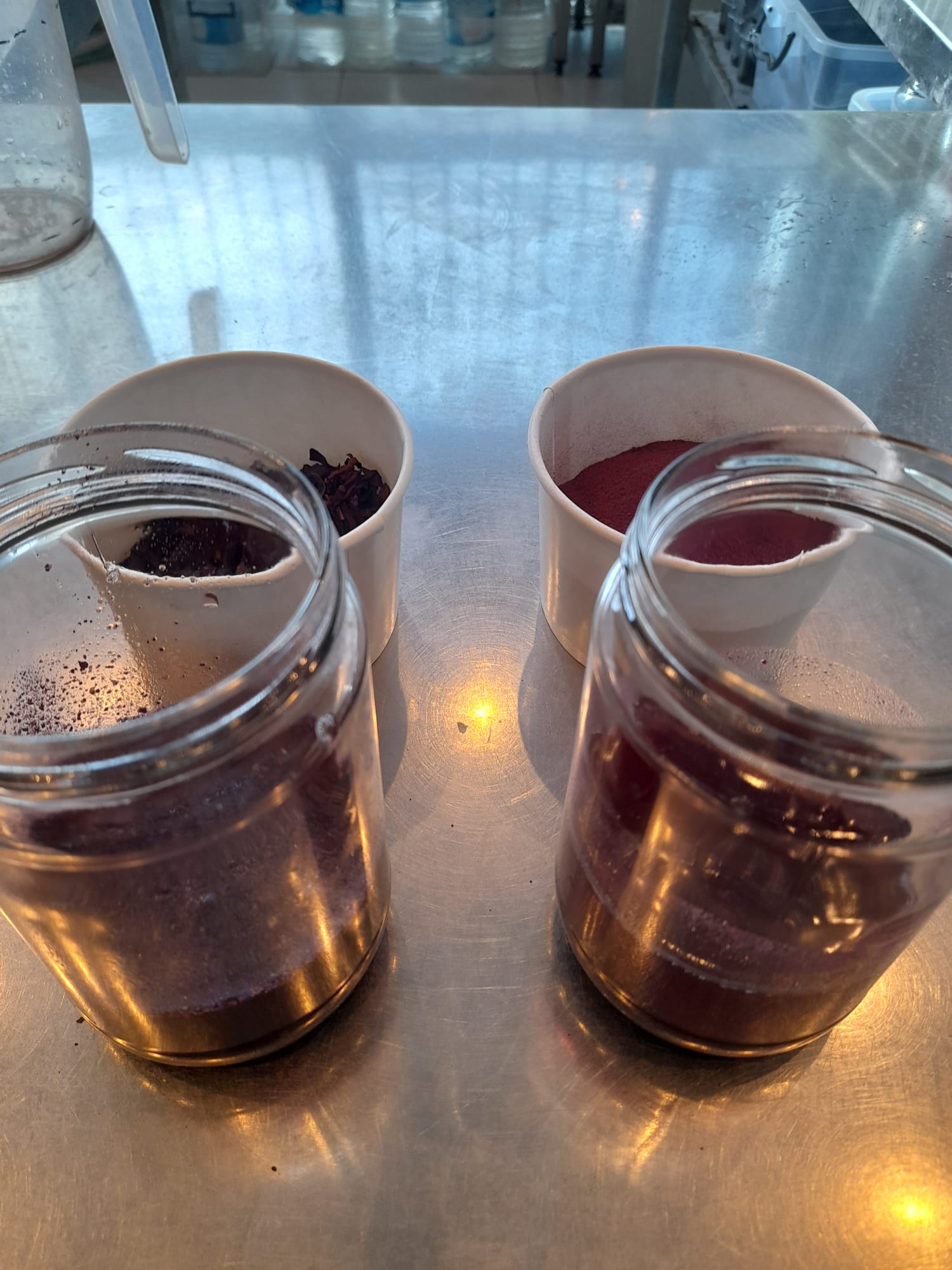 Both materials were fermented separately in kombucha liquid to observe pigment behavior.