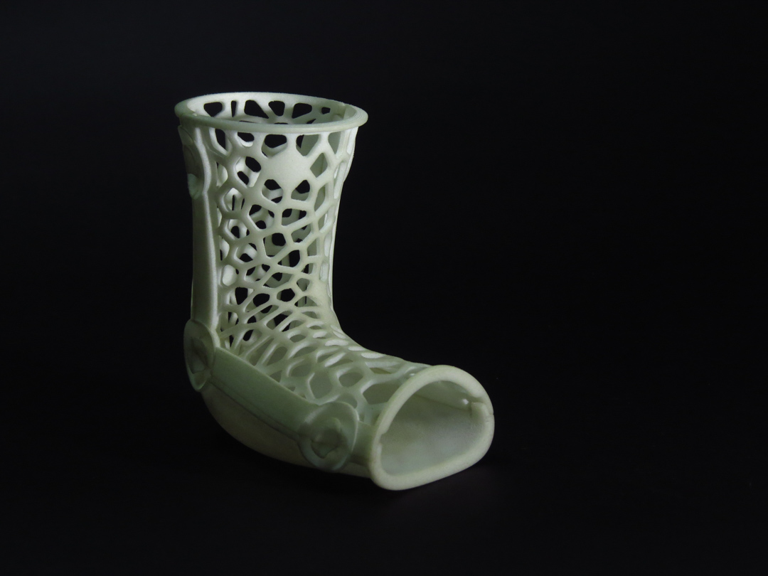 I worked on 3D printed braces for babies born with club-foot syndrome. The existing devices that were used to correct the misalignment of the foot were physically uncomfortable, and visually looked like medieval torture devices, so parents were taking them off either out of worry or very often out of embarassment when in public or having visitors at home, causing relapses and nullifying the therapy.