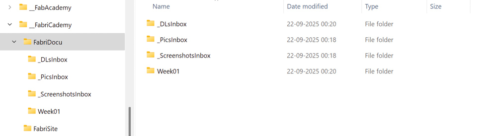 I created a Fabricademy folder on my machine, and created the following subfolders