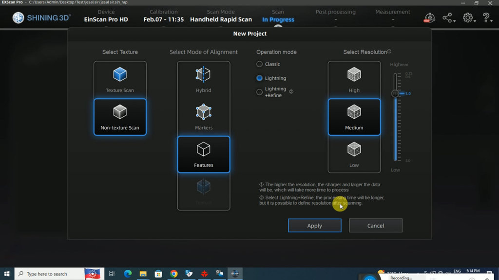 - Einscan HD pr and it's associated operation software