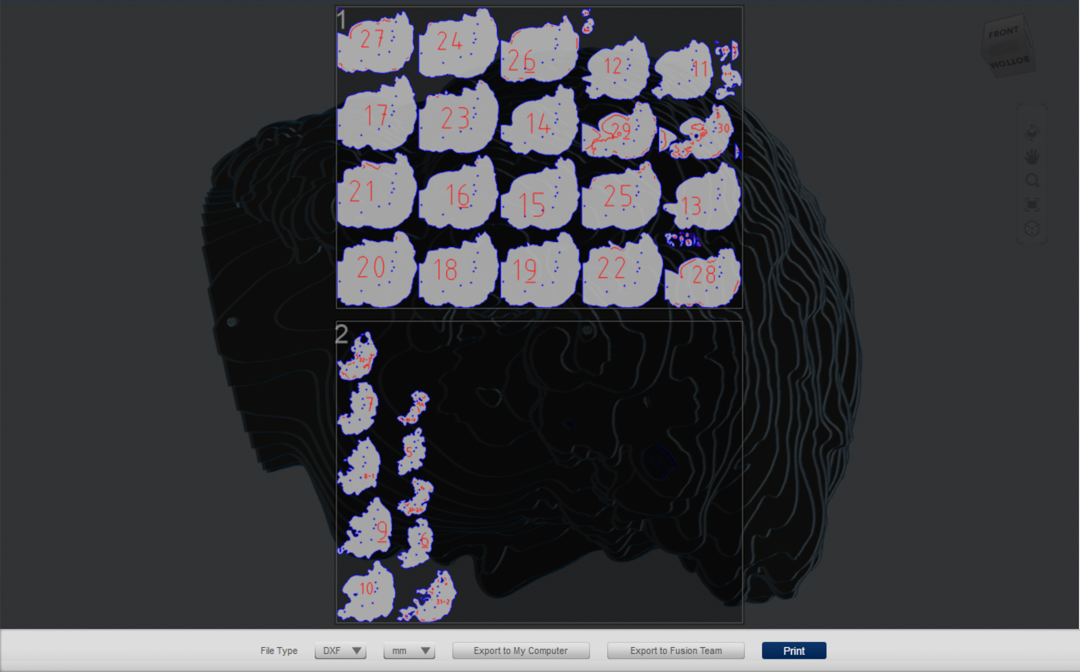After all the fine-tuning, I exported the DXF files for lasercutting.