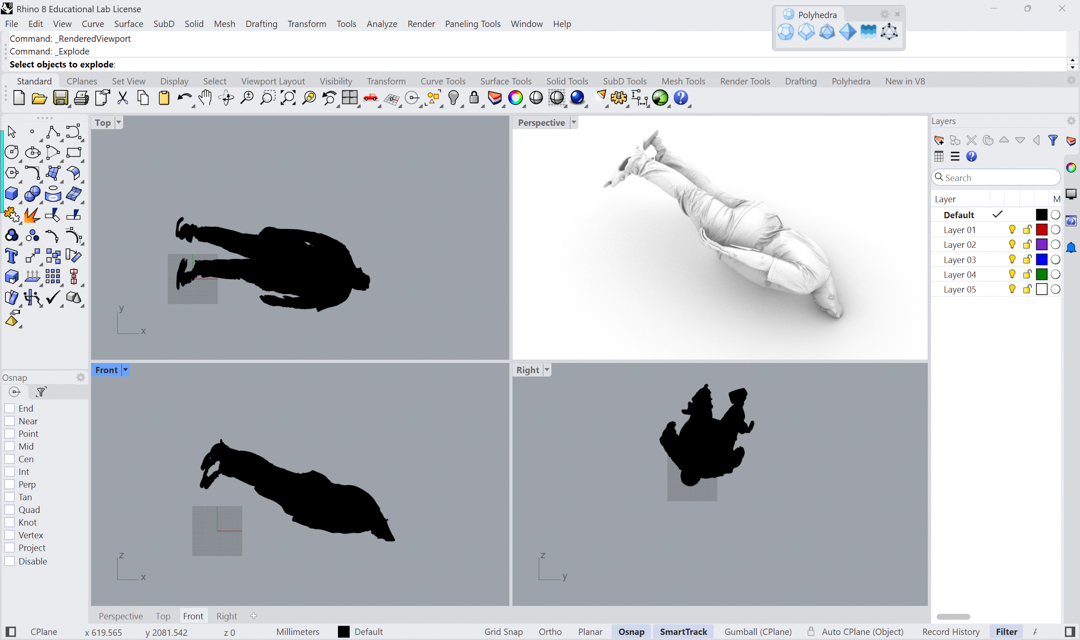 - exported the 5 "person" model from Rhino instead of the 9 person model