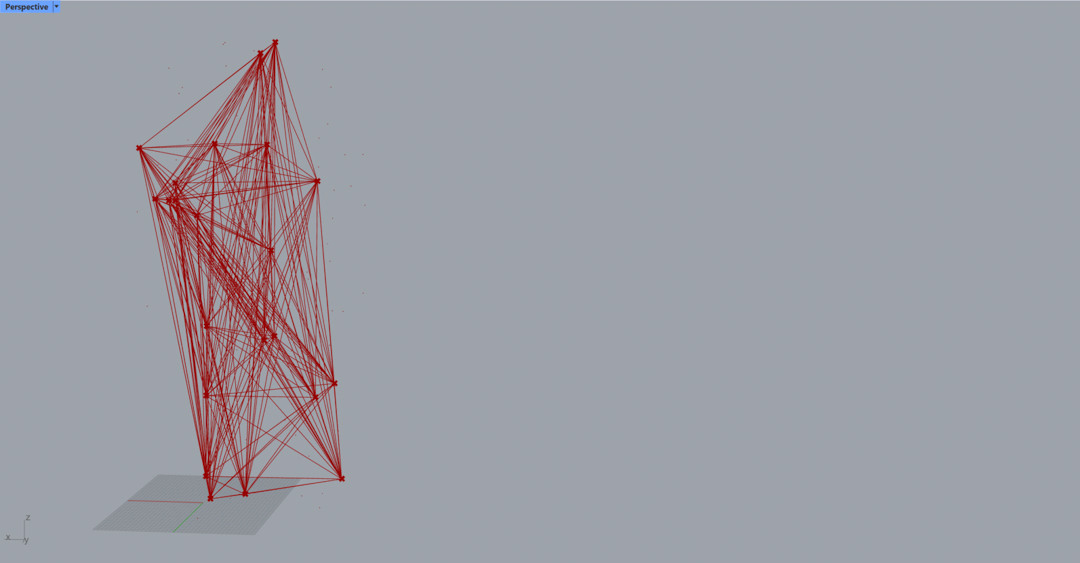 I tried a Many-to-Many lines, from each point of the low-poly mesh to every other point. This resulted in this triangulated nest of lines, but also, at some point, things got too intense to process and the sfotware threatened to give up.