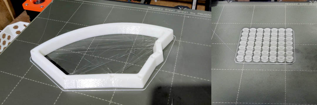I had initially considered lasercutting 3 mm acrylic but I didn't have the right material on hand, so I decided that it's a small part, it can almost as easily be 3D printed. I modelled and printed out about a 100 spacer pieces.