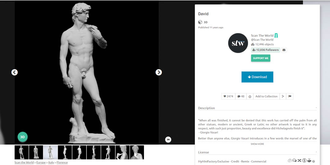 I downloaded Michelangelo's David as an STL file.