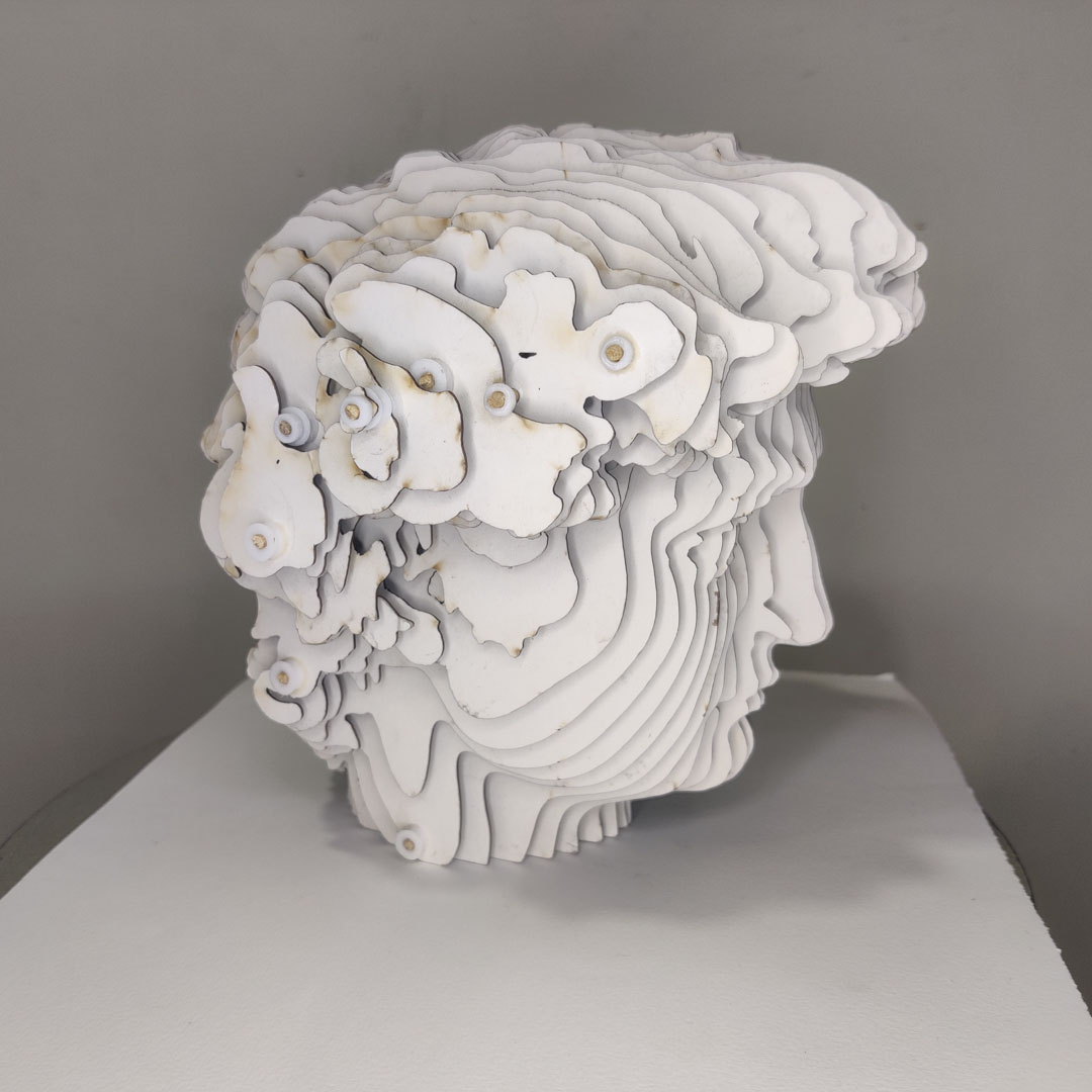 Since this was a day or so before I went for 3D scanning, and having attended Rico's Blender session, I decided to use existing 3D scans to work with, and what better to represent the mind and the head than Michelangelo's David.