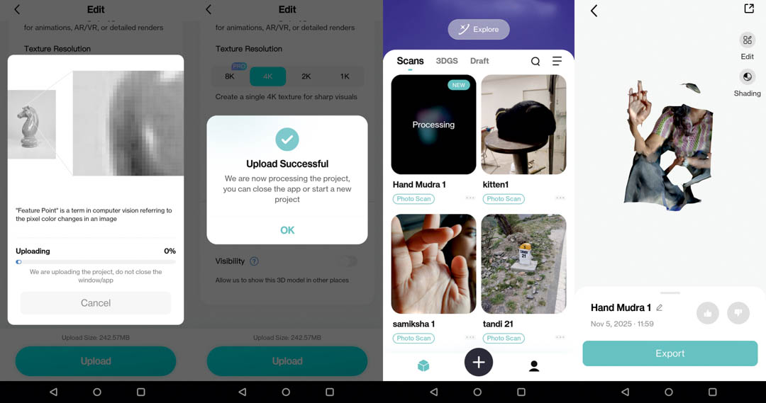 Sangram sir was instrumental for the 3D scanning. My students, Mihir, who documented the process of me being 3D scanned, and Samiksha, who was the hand model for the KiriEngine scan, were invaluable.