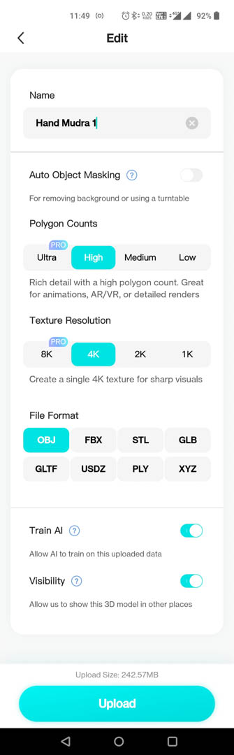 - Choose Polygon Count : High/Medium/Low