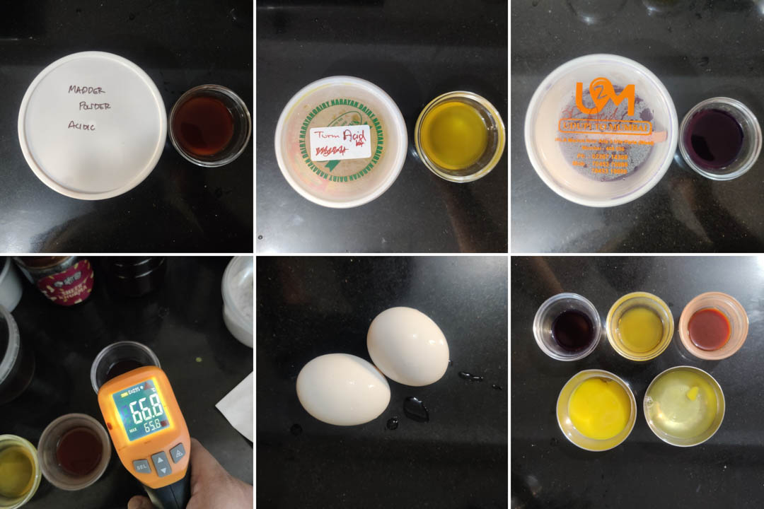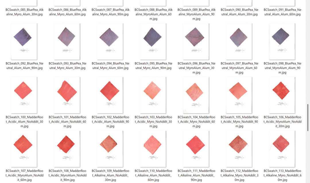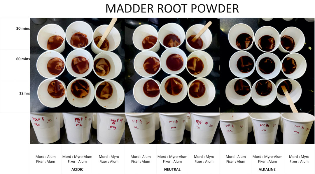 - Technical skills: Master techniques mordanting, dyeing (botanical or bacterial), pigments