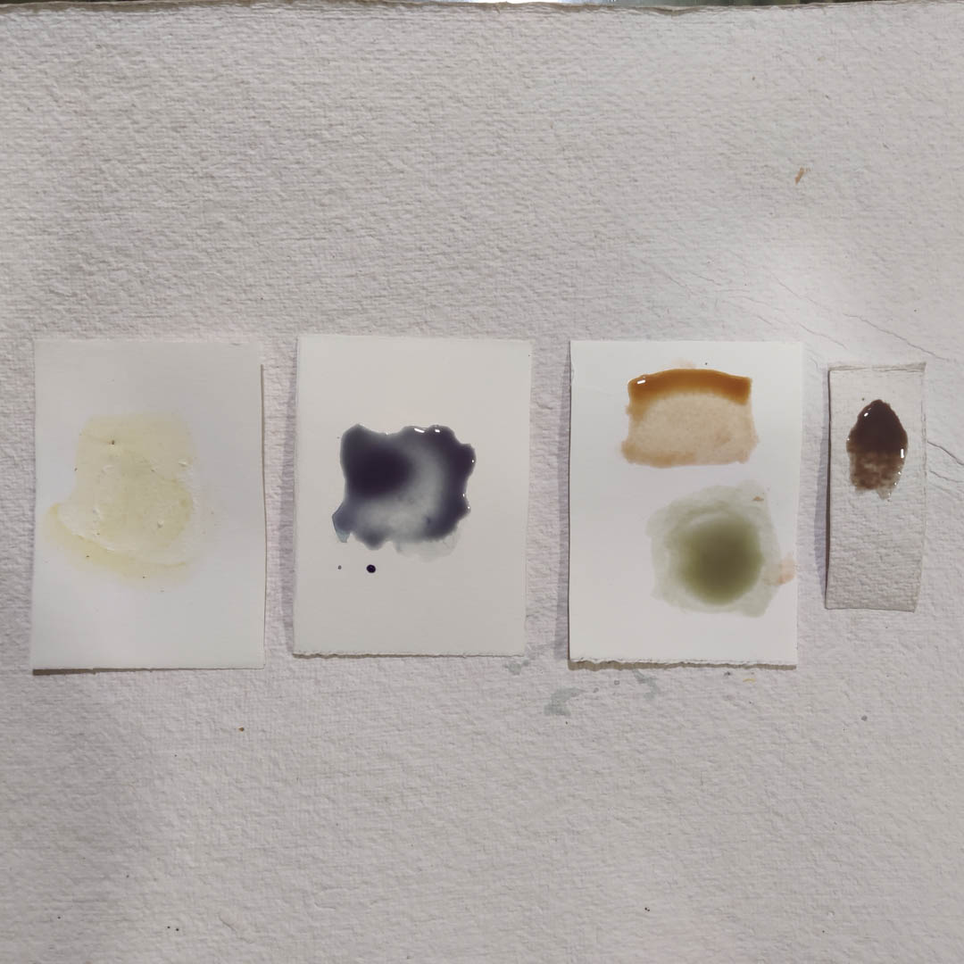 Since I had no wool or silk, I was working primarily with cellulose in the cotton fabric and the watercolour paper.