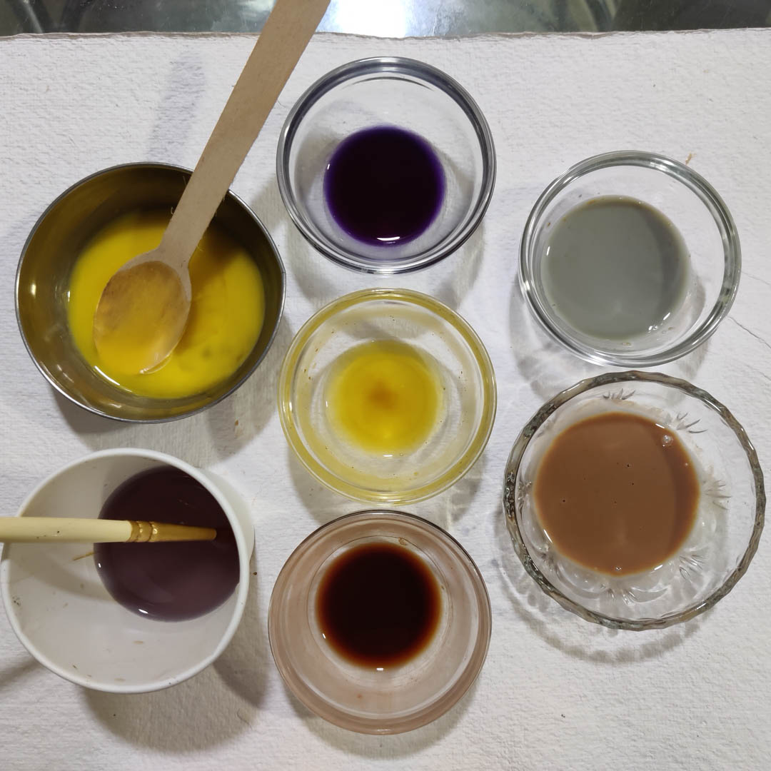 Since I wanted to use the dye liquid instead of pigment here as well, I used the egg yolk but instead of vinegar, I used citric acid crystals to compensate for the dye water content.