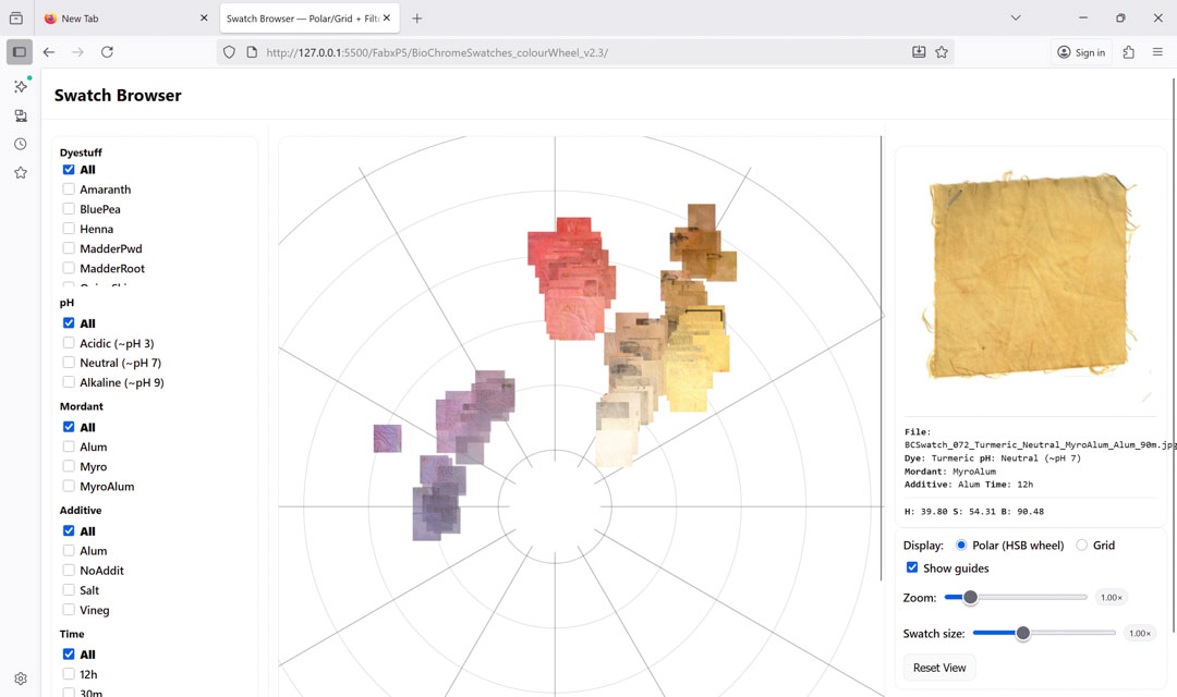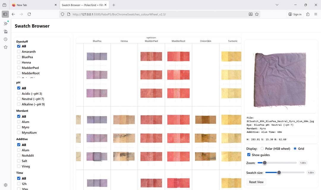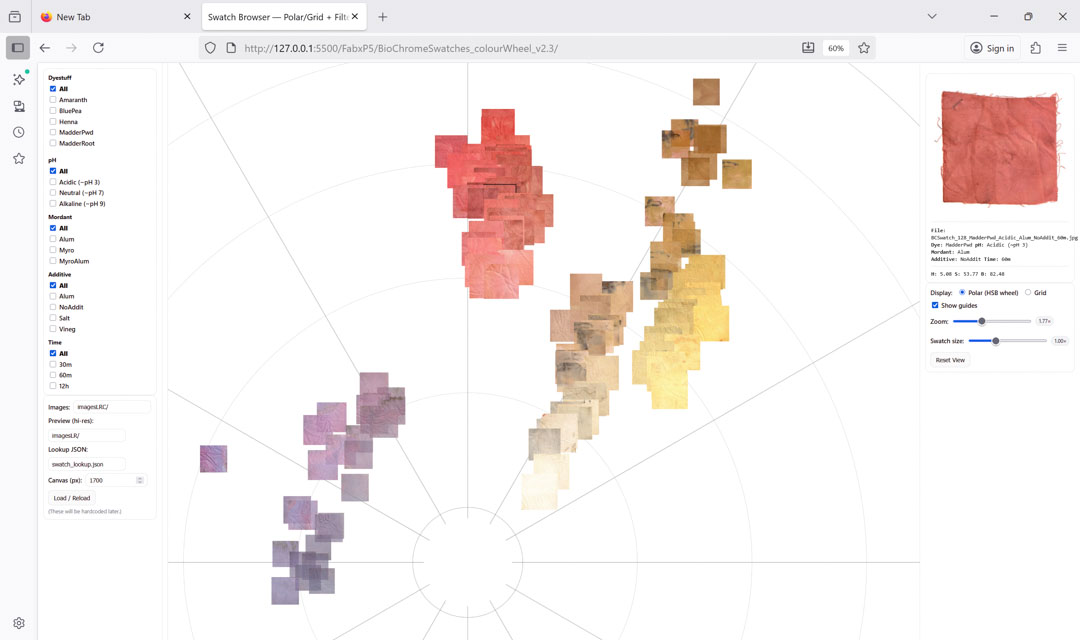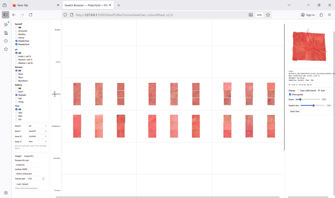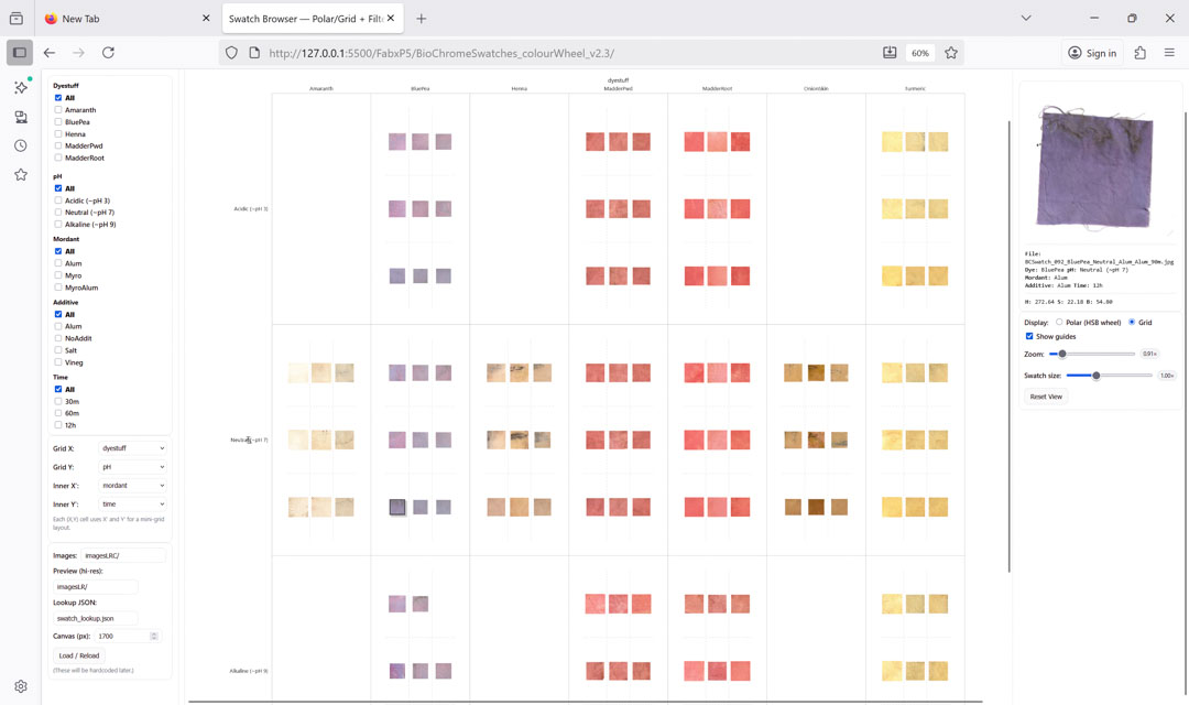 Lastly, I got it to create a tool that could arrange the swatches in a grid, based on selected parameters to group, filter and sort by.