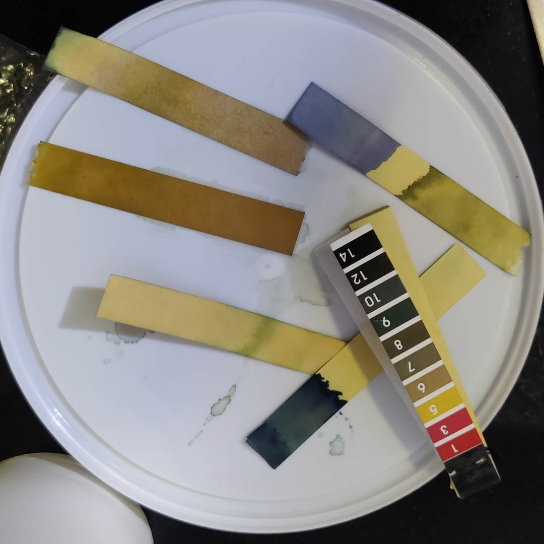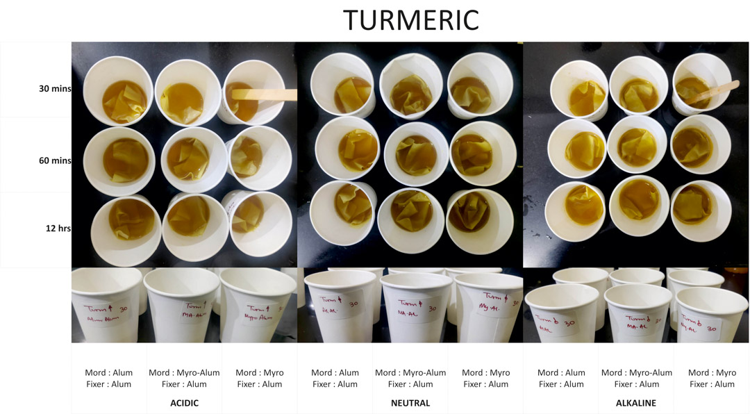- Turmeric - While this had been tried by my instructors last year, I wanted to try it in it's alkaline avatar which I remembered to be significantly redder from high school chemistry sessions. I also wanted to use Turmeric's fugitiveness to try out an idea, which I will detail later.