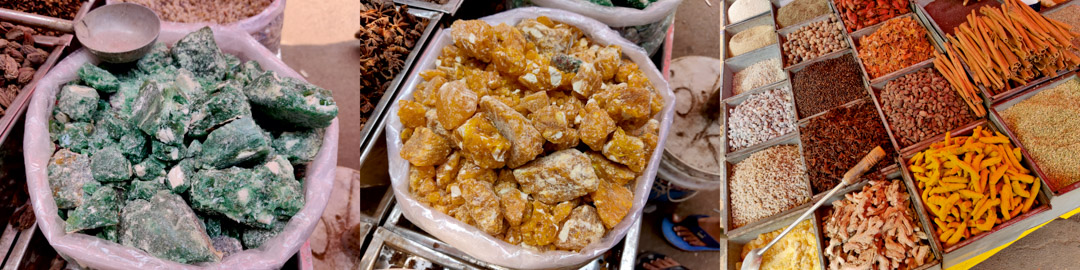 This is an image of an open market in Mapusa, Goa, with locally harvested gums and resins - some used to make "dhoop" incense to burn, others in edible sweets made for the winter. I had seen these on a 2021 trip, and knew that locally we had a range of gums and tree resins used traditionally.