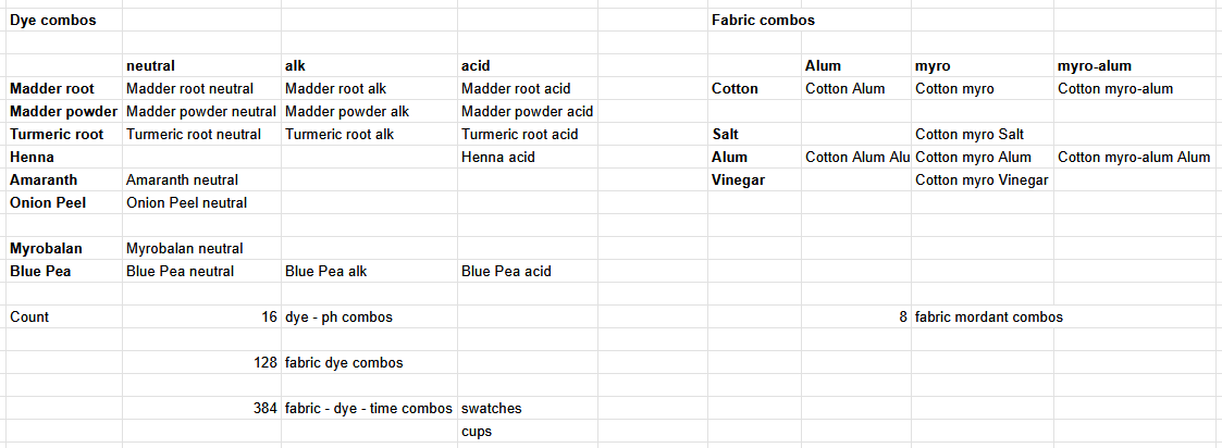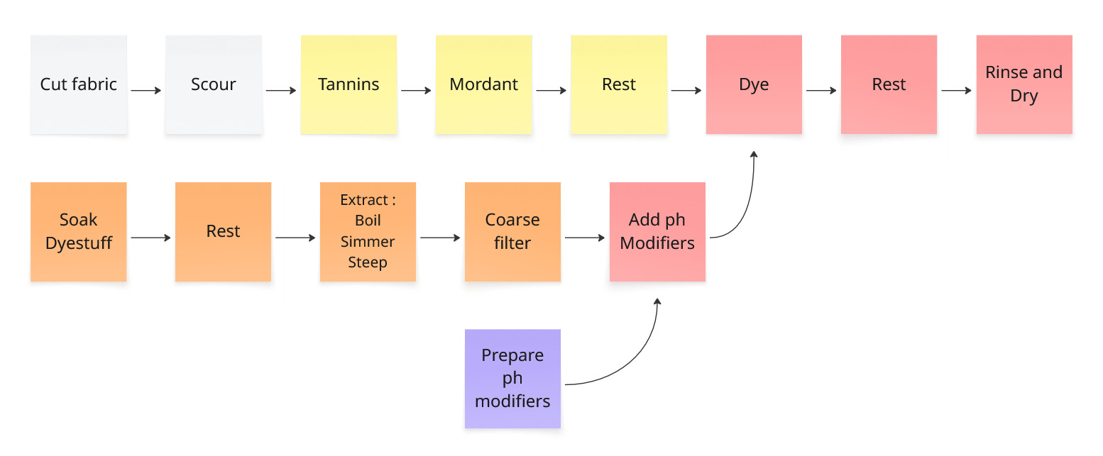Short List Recipes – overall choice of dyestuffs and availability Go Shopping Start Documenting Prep Fabric – Scouring Set Up Space – checked |