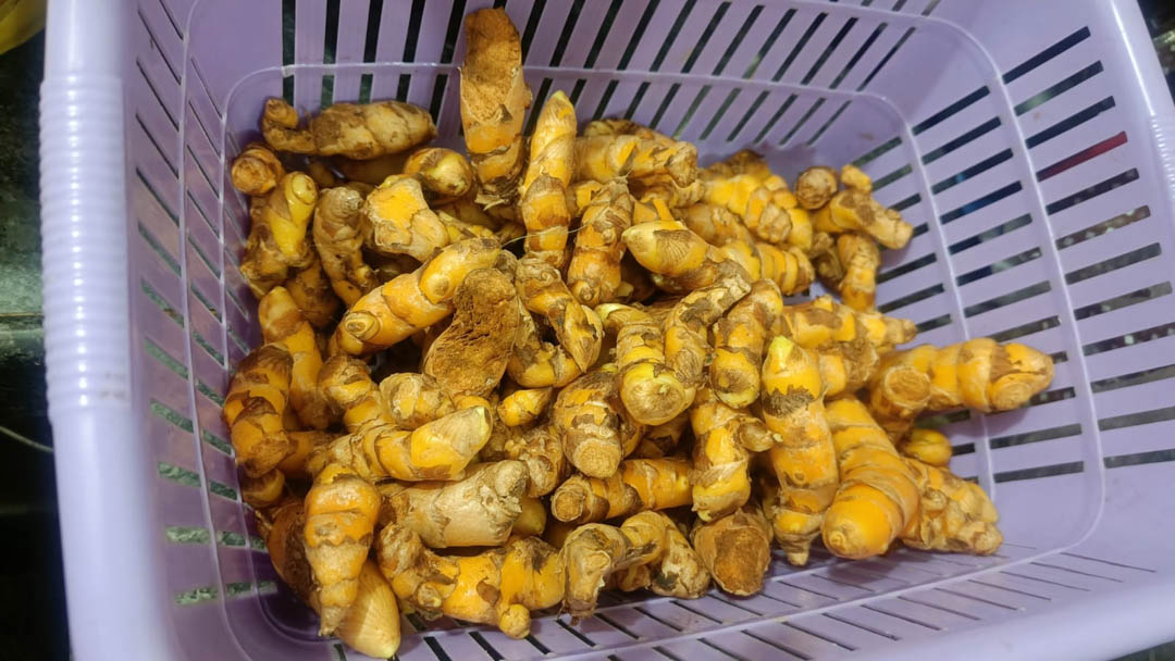 Anyway, this a material for a longer thought elsewhere, but here's some Turmeric grown and harvested at our place a couple of hours outside the city of Mumbai. I was hoping to use this for the dye but it's arrival was delayed and I used regular market bought stuff, and this harvest was pickled or went to friends.