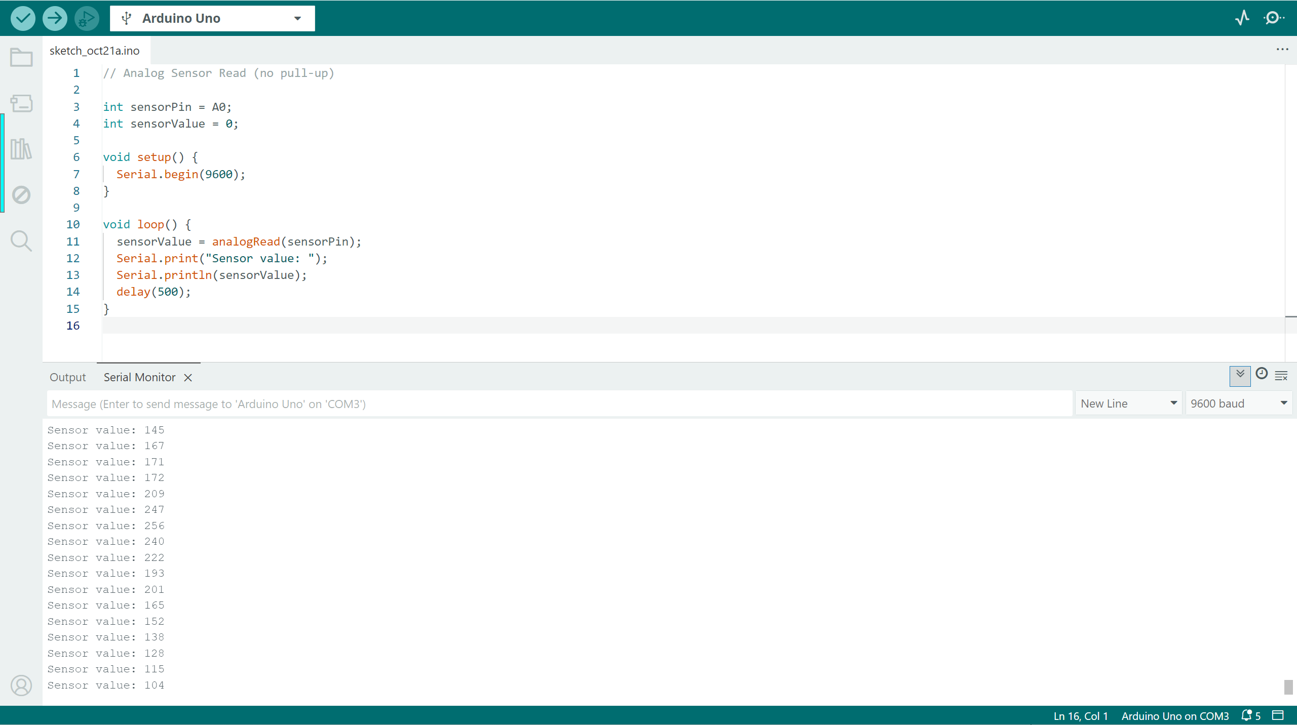 Serial.println(sensorValue);