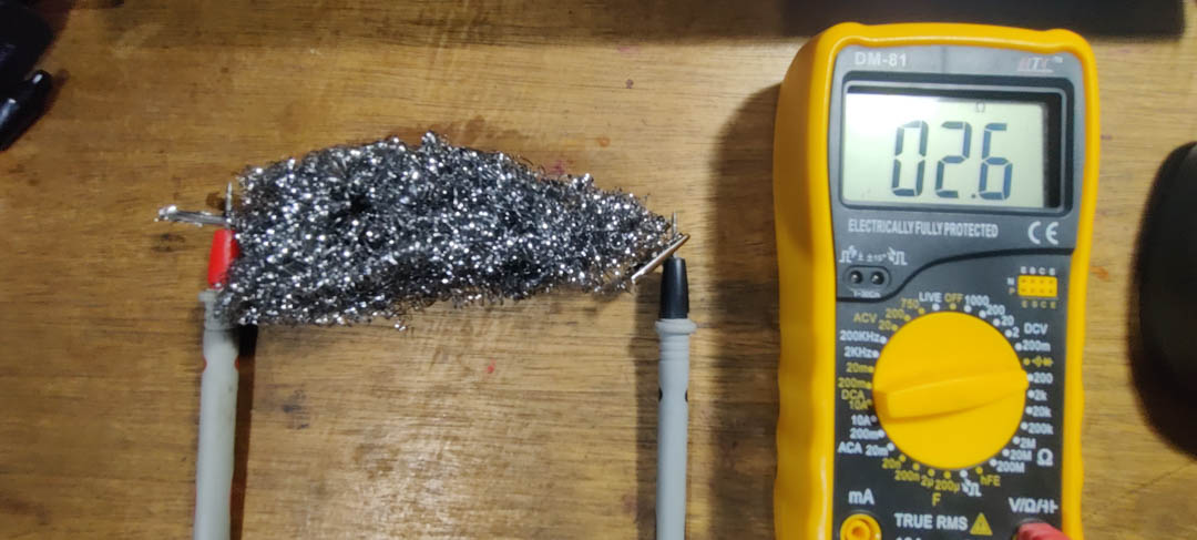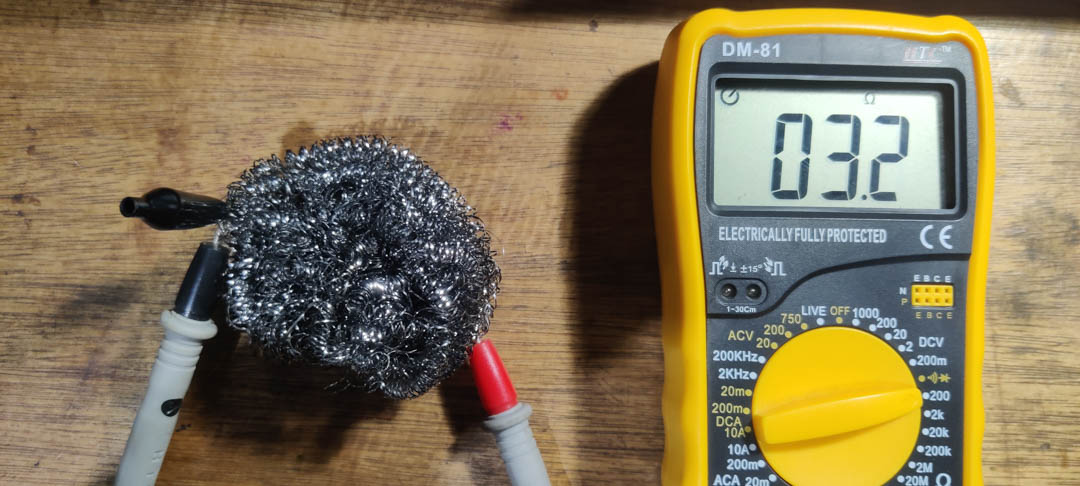A steel mesh pot-scrubber, when squeezed, increases contact between it's strands, and drops in resistance. This change in resistance can be used to infer pressure.