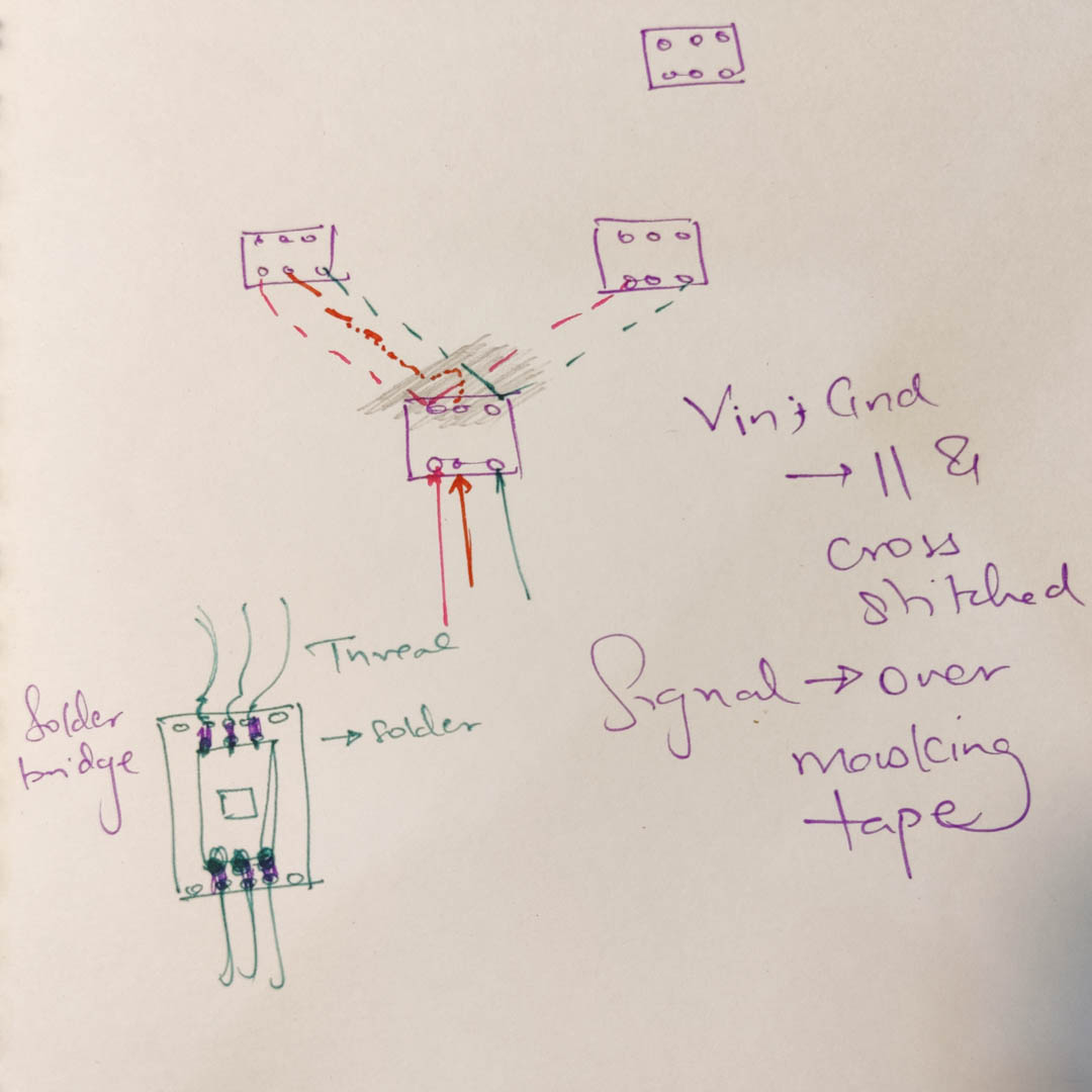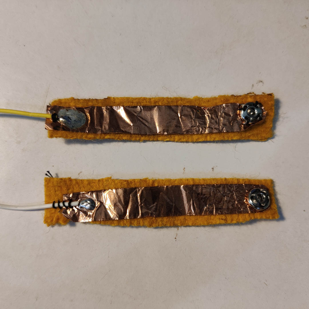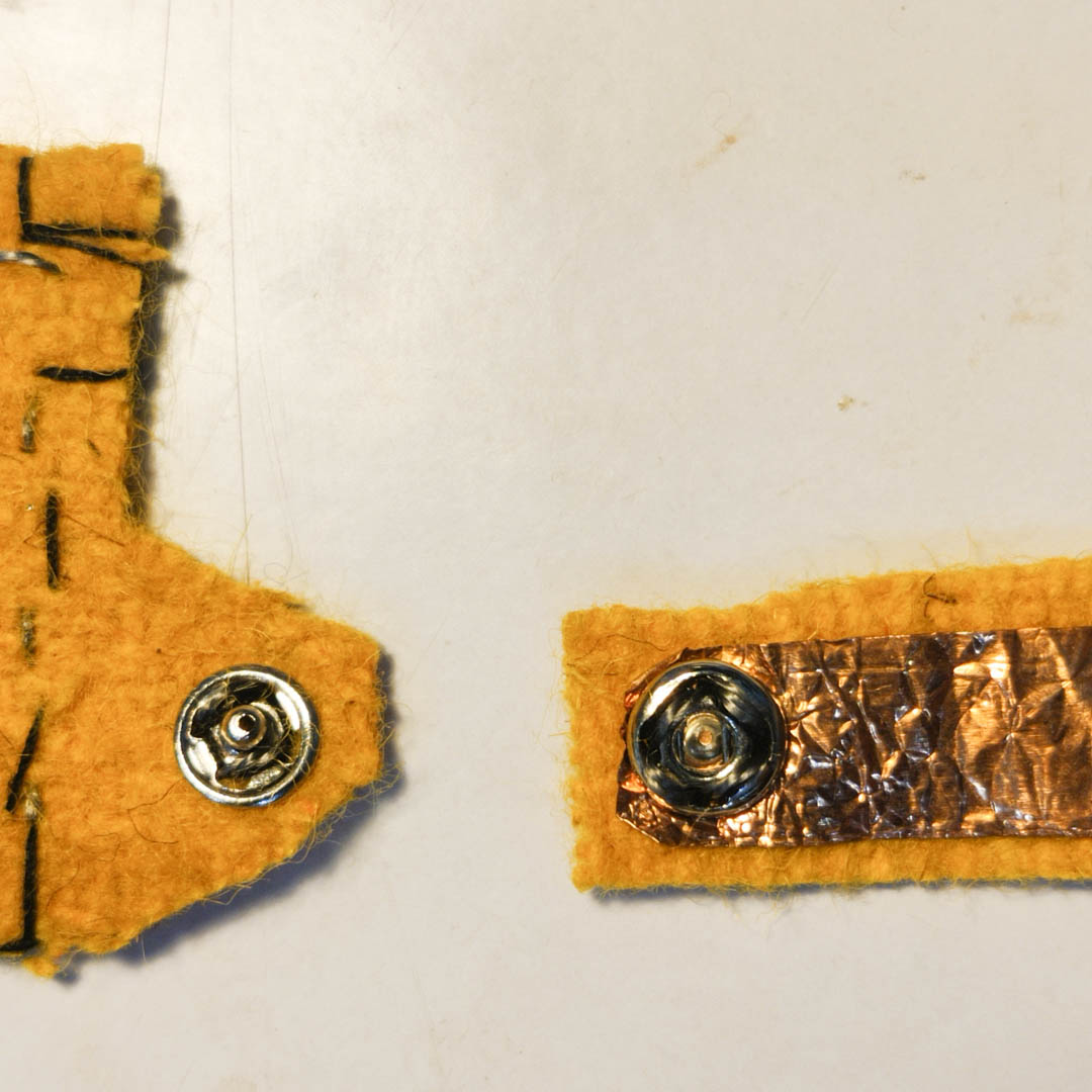 Copper tape + Pressfit buttons + Conductive thread