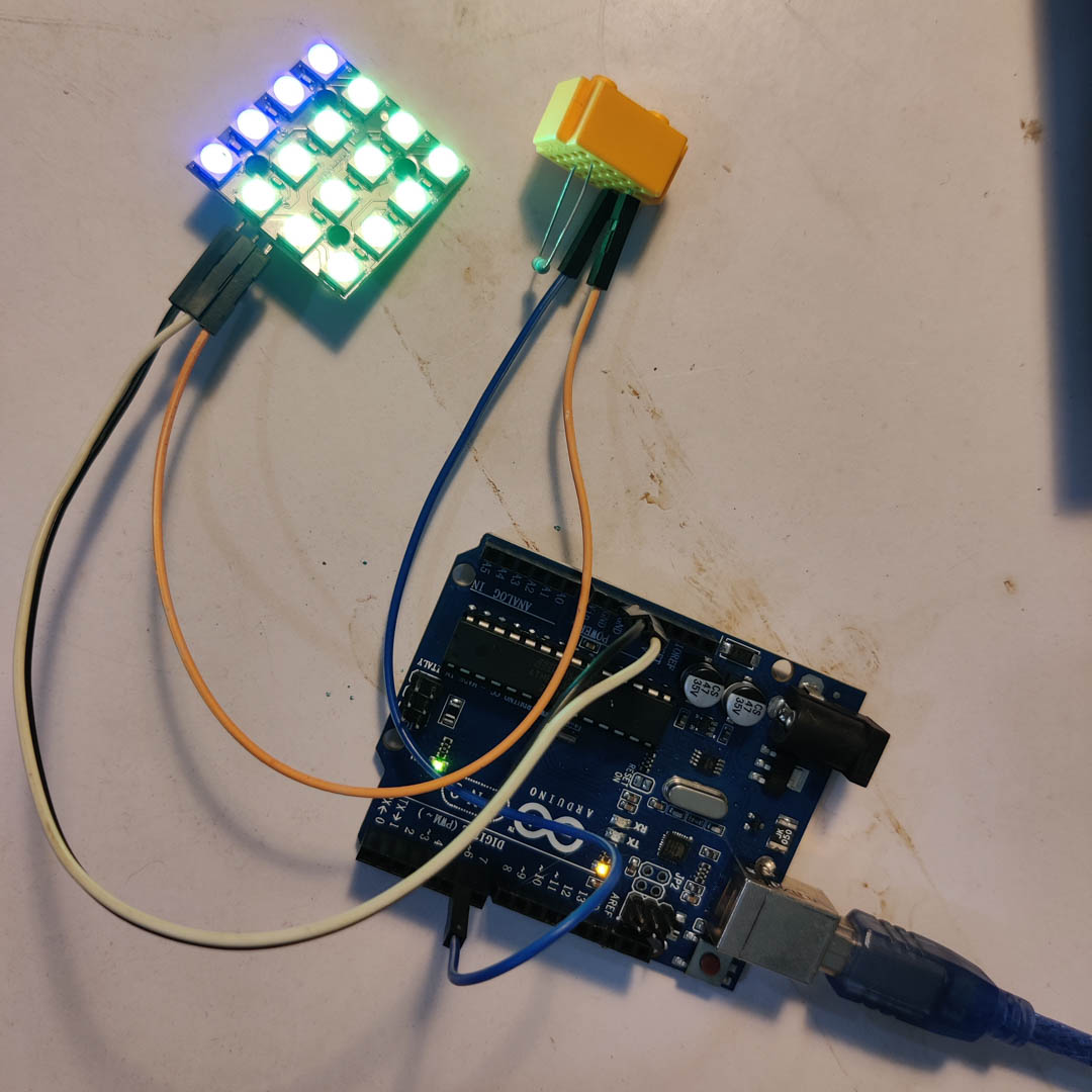 Pressure sensor based NeoPixel lightup I wanted to use the squeeze or pressure sensor as an input, and based on the level of the input, light up neoixels.
