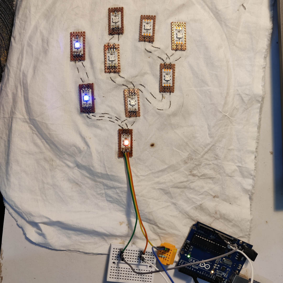 Eventually I settled on creating the White Tree of Gondor, defined by Neopixel LEDs.