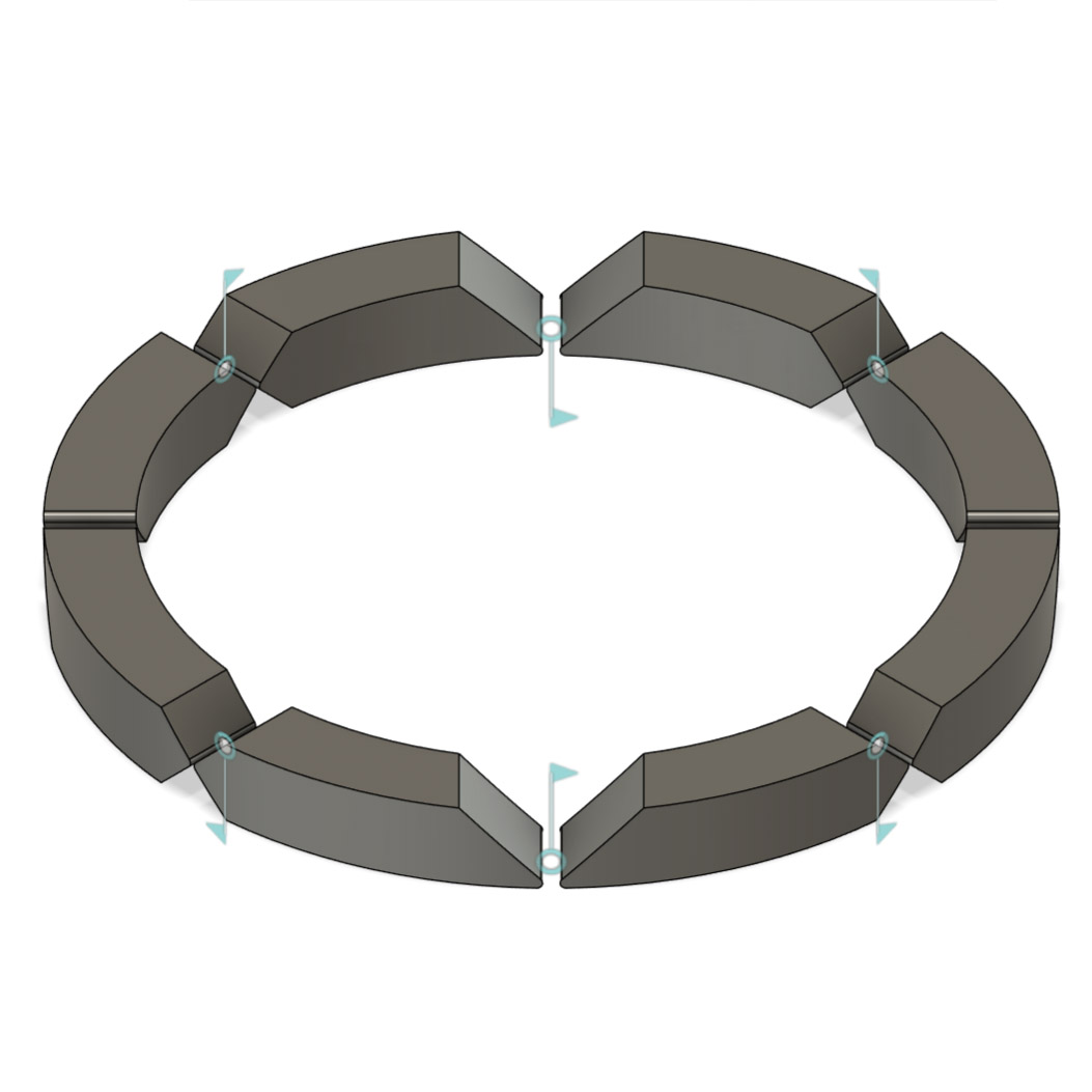 So I modelled a single ring structure in Fusion. I also applied rotational joints with angle limits to see if I could simulate the movement.