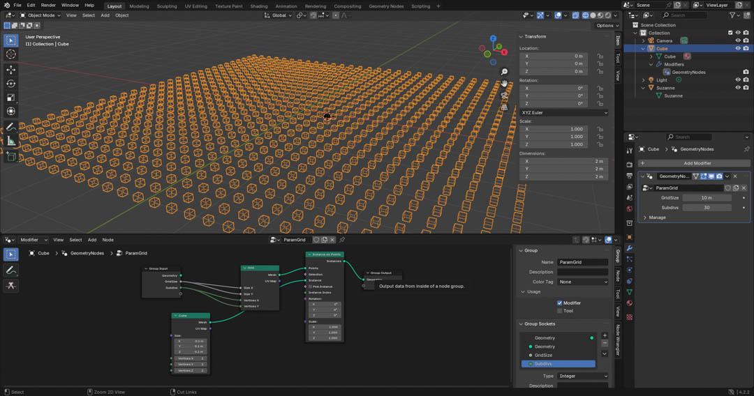 Durig Rico's Blender tutorial for Geometry Nodes, I realised how far Gometry nodes had come since I last tried them out a year or more ago (or I simply never understood the interface well enough to explore them properly)