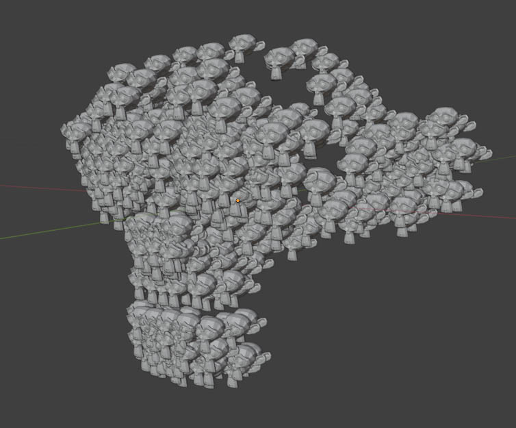 Instancing a scaled down monkey on every mesh point of a monkey head
