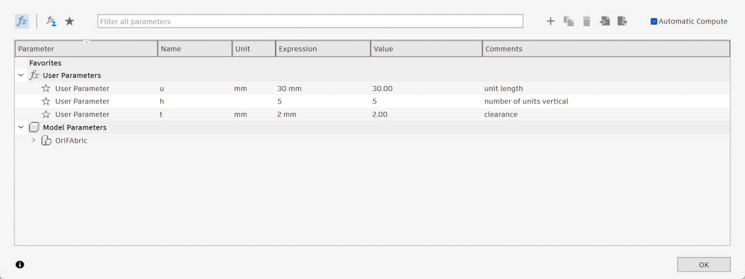 Clearance between panels to work with different 3d printing settings and fabric properties can also be managed through the parameter.