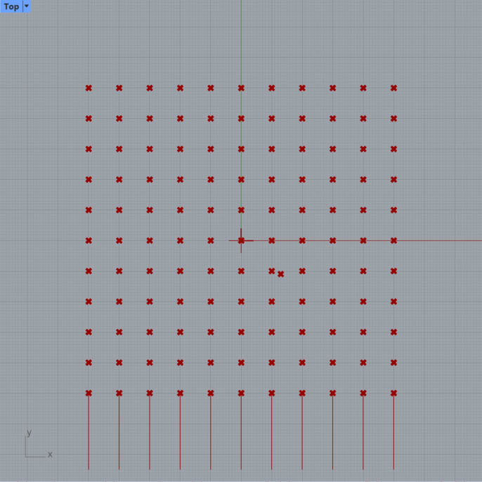 - the randomised grid points (or the original ones) are also moved upwards along Z by a distance
