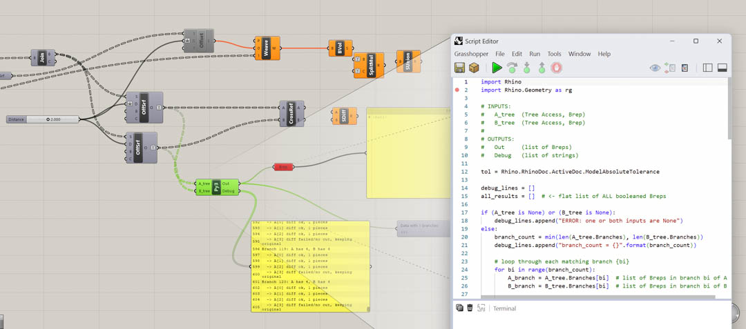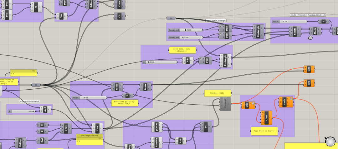 The results seemed to work as far as the computation was concerned, since print messages showed sensible data, but it did not give 3d outputs back to Grasshopper, and I stopped debugging that at some point for a lack of time.