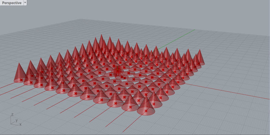 - define the height of the cone based on the distance computed, with remappings or scaling if needed